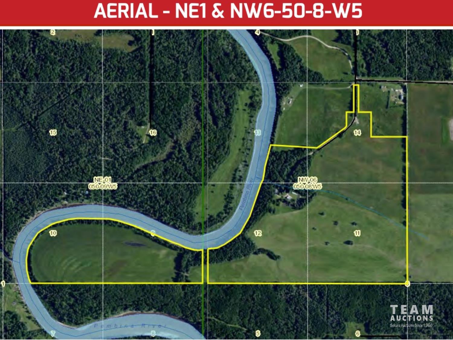 The property has 2 land title certificates. They are selling as one property as the only access to the NE1-50-8-W5 parcel is through NW6-50-8-W5 parcel.