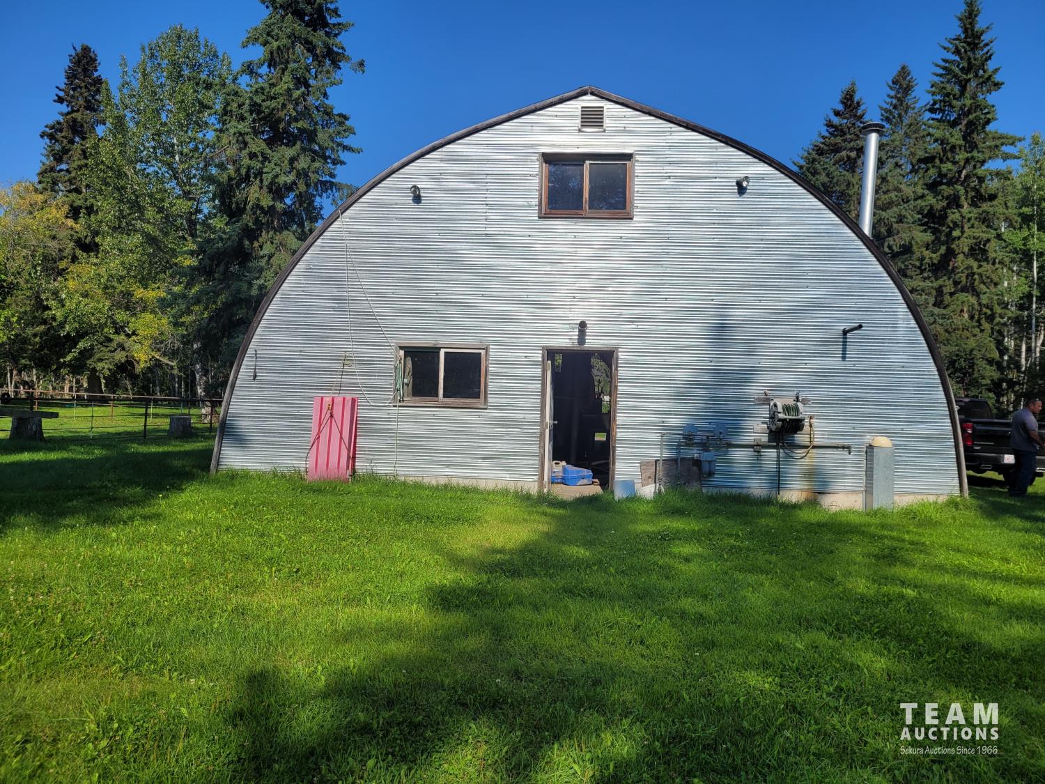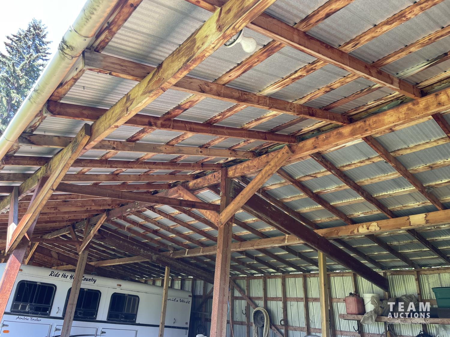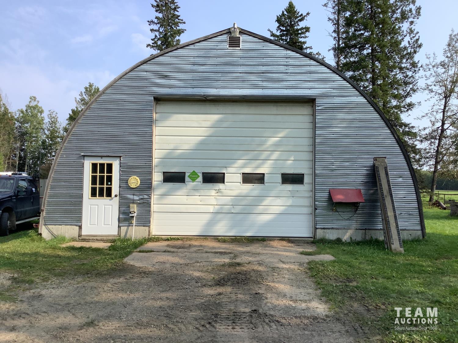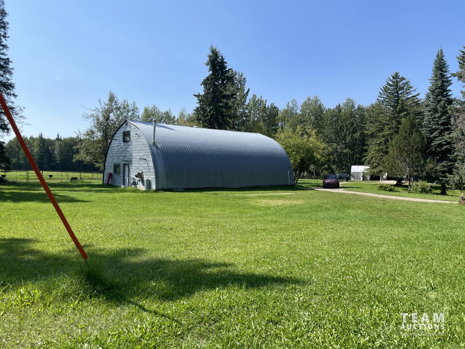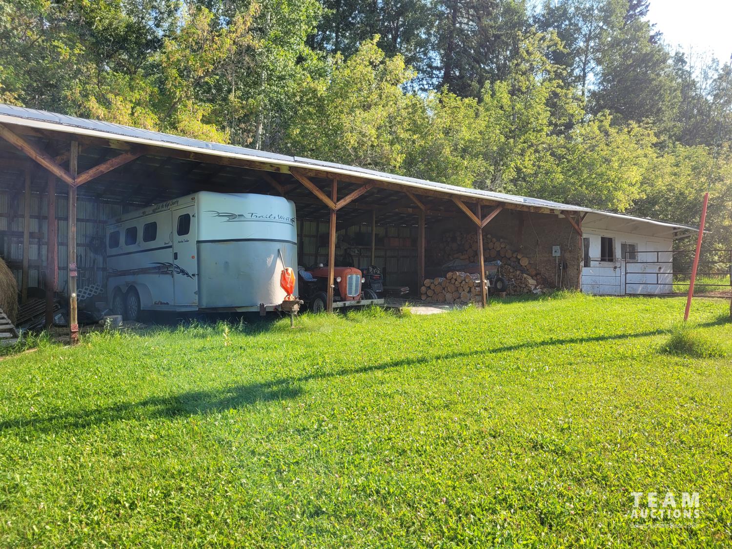 Gazebo/Firepit Amazing covered area overlooking the Pembina River Whirly bird on roof above firepit aids in clearing any smoke. Concrete floor in firepit portion Plank floor in river viewing area. 32 X 48 Ft Quonset Shop Heated, insulated Two-piece bath Small mezzanine Overhead door Open faced Five-bay Machinery Storage Taller RV storage bay on west end, Power Small Barn Tack area Double tie stall Single tie stall Large box stall with its own exit gate to paddock Floor drain for ease in cleaning Power Concrete floor Garden Shed Two room Character wood floor