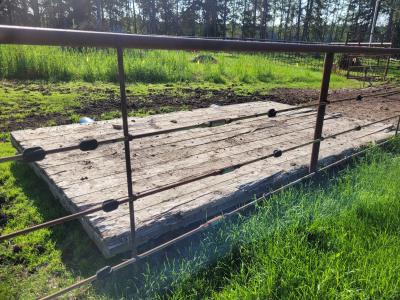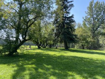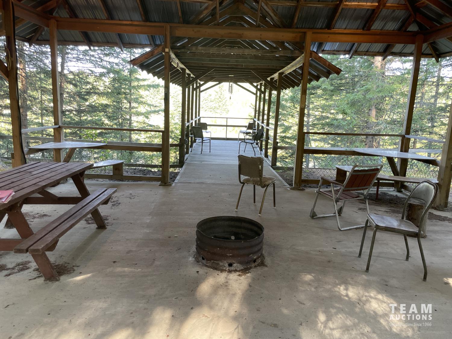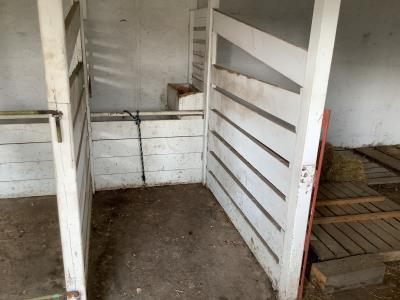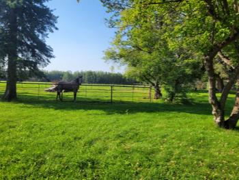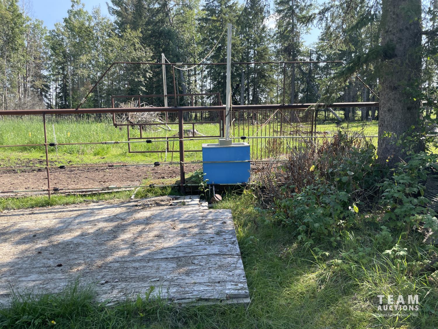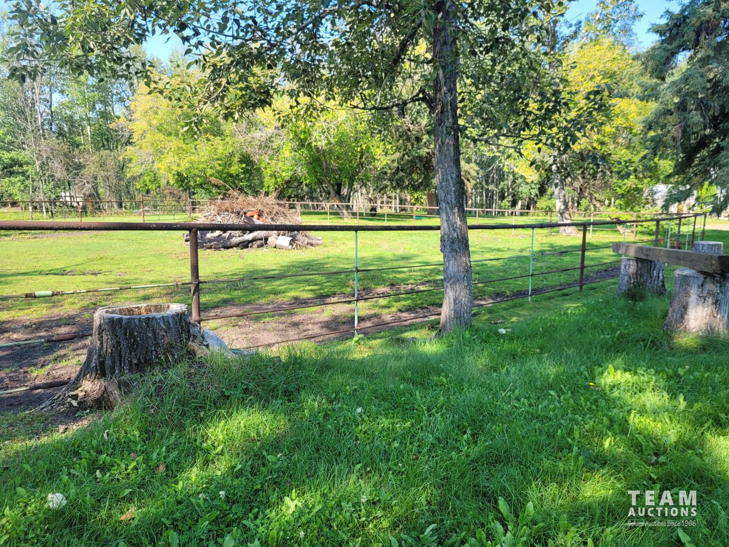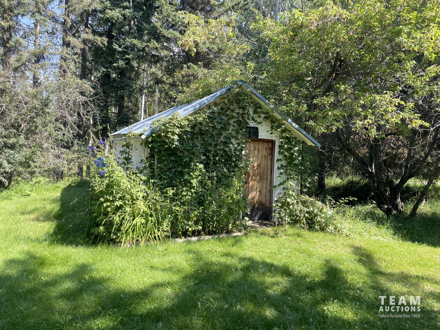 Gazebo/Firepit Amazing covered area overlooking the Pembina River Whirly bird on roof above firepit aids in clearing any smoke. Concrete floor in firepit portion Plank floor in river viewing area. 32 X 48 Ft Quonset Shop Heated, insulated Two-piece bath Small mezzanine Overhead door Open faced Five-bay Machinery Storage Taller RV storage bay on west end, Power Small Barn Tack area Double tie stall Single tie stall Large box stall with its own exit gate to paddock Floor drain for ease in cleaning Power Concrete floor Garden Shed Two room Character wood floor