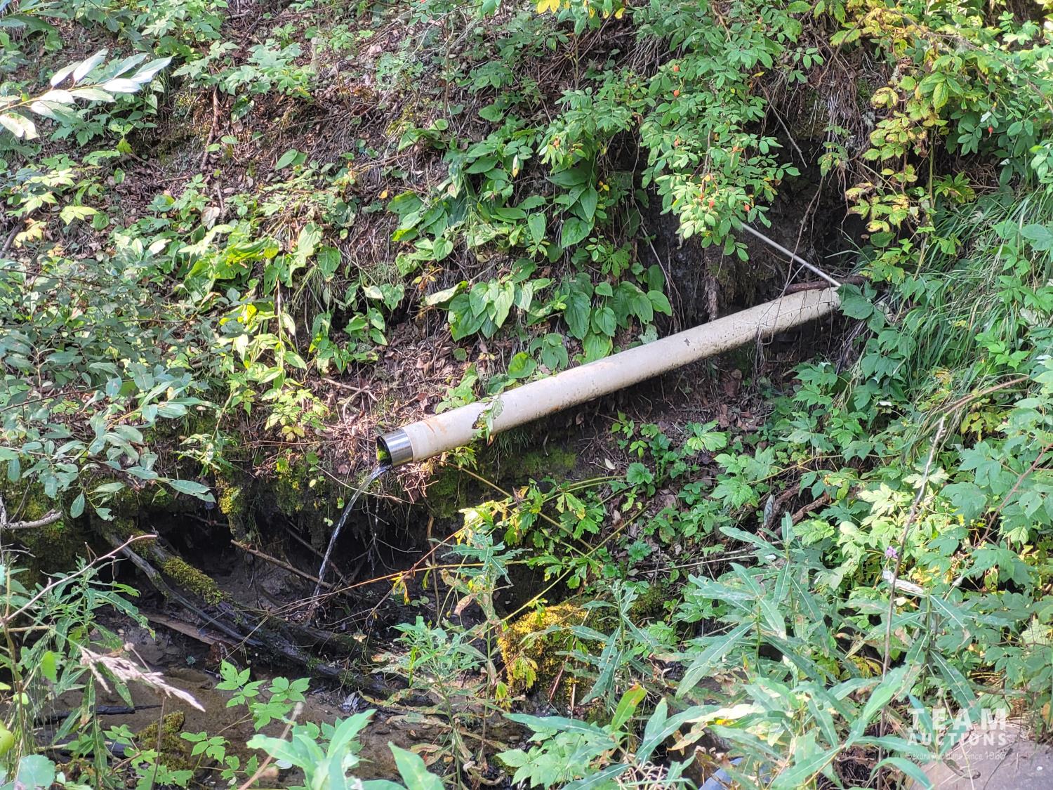 Artesian well overflow drains into the draw to north of house