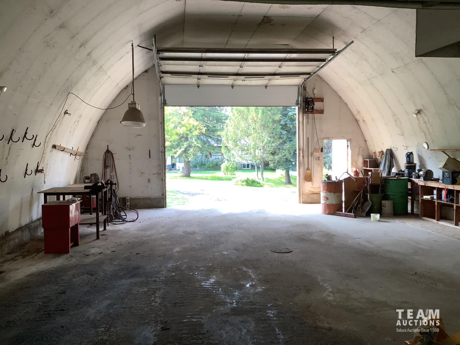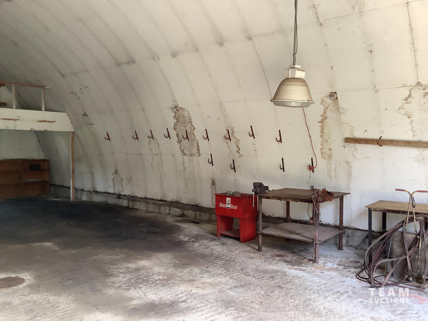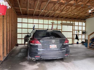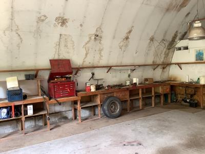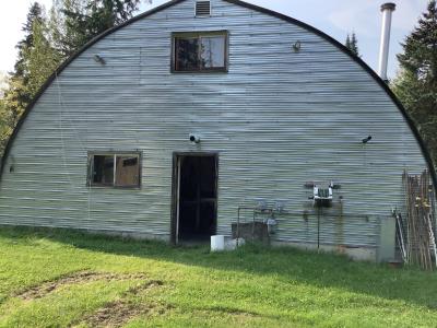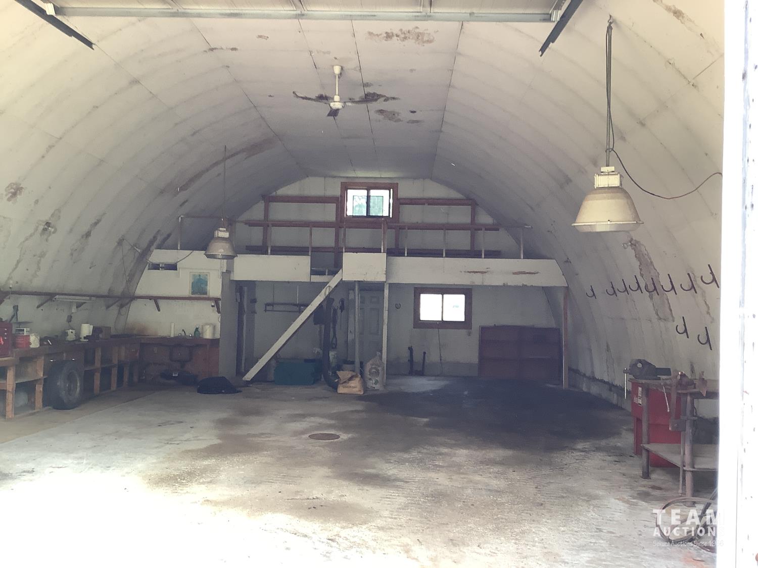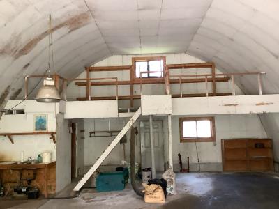 220 Volt Wiring, Heated, 2 piece bathroom, small mezzanine lined with osb sheeting overhead door, quonset style measurement (taken at ground level) 32 X 48 Ft