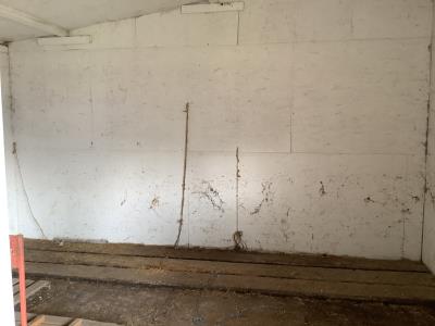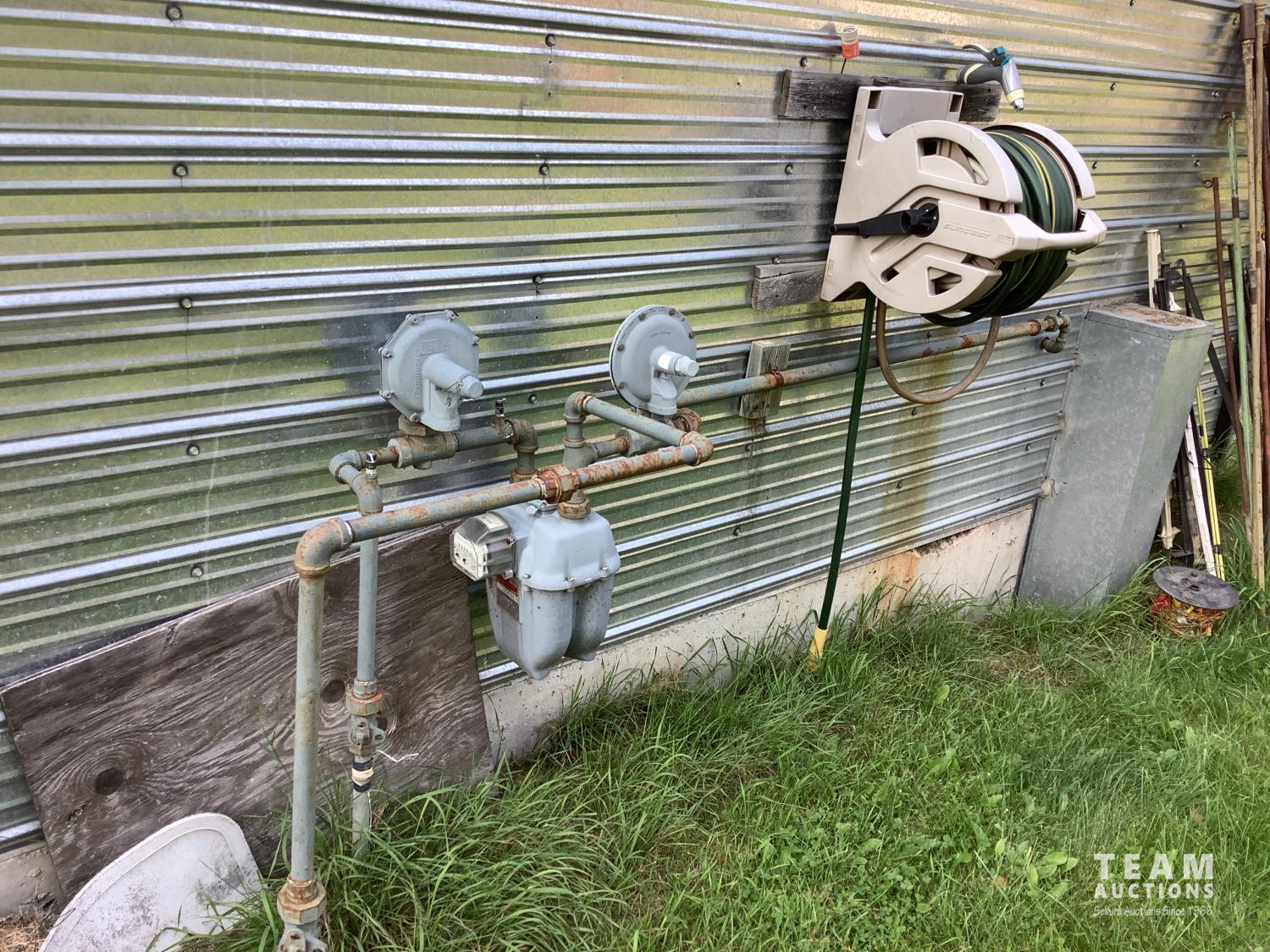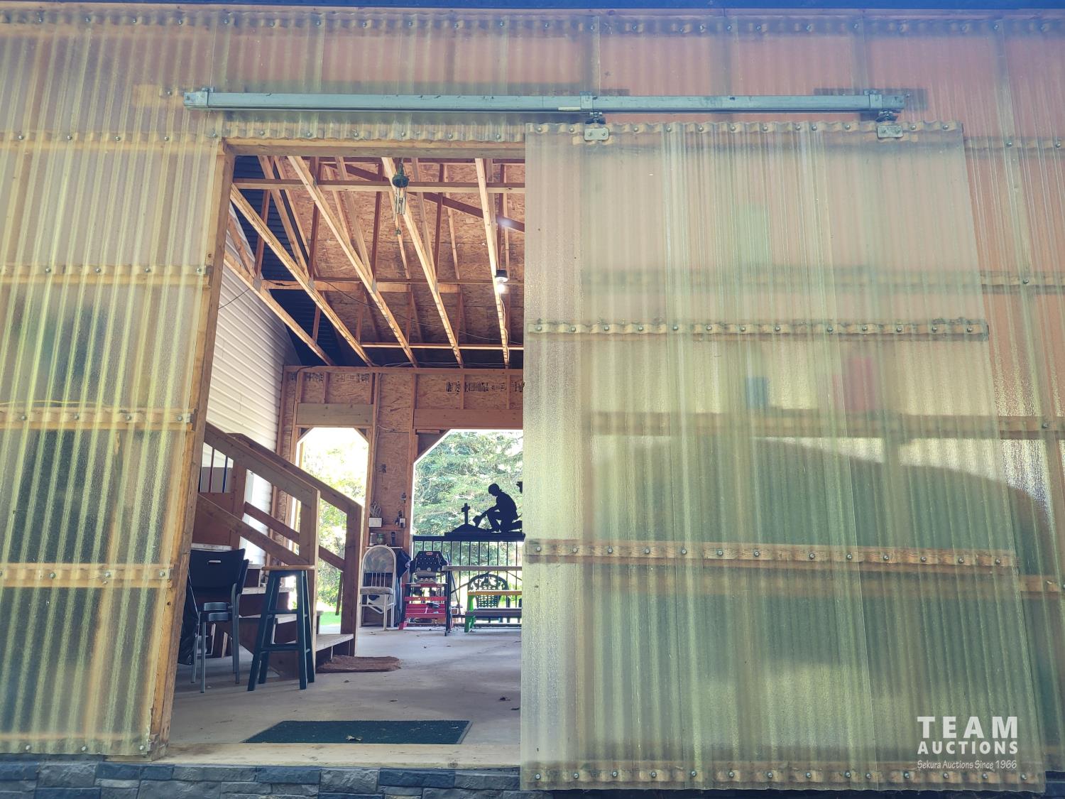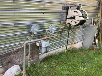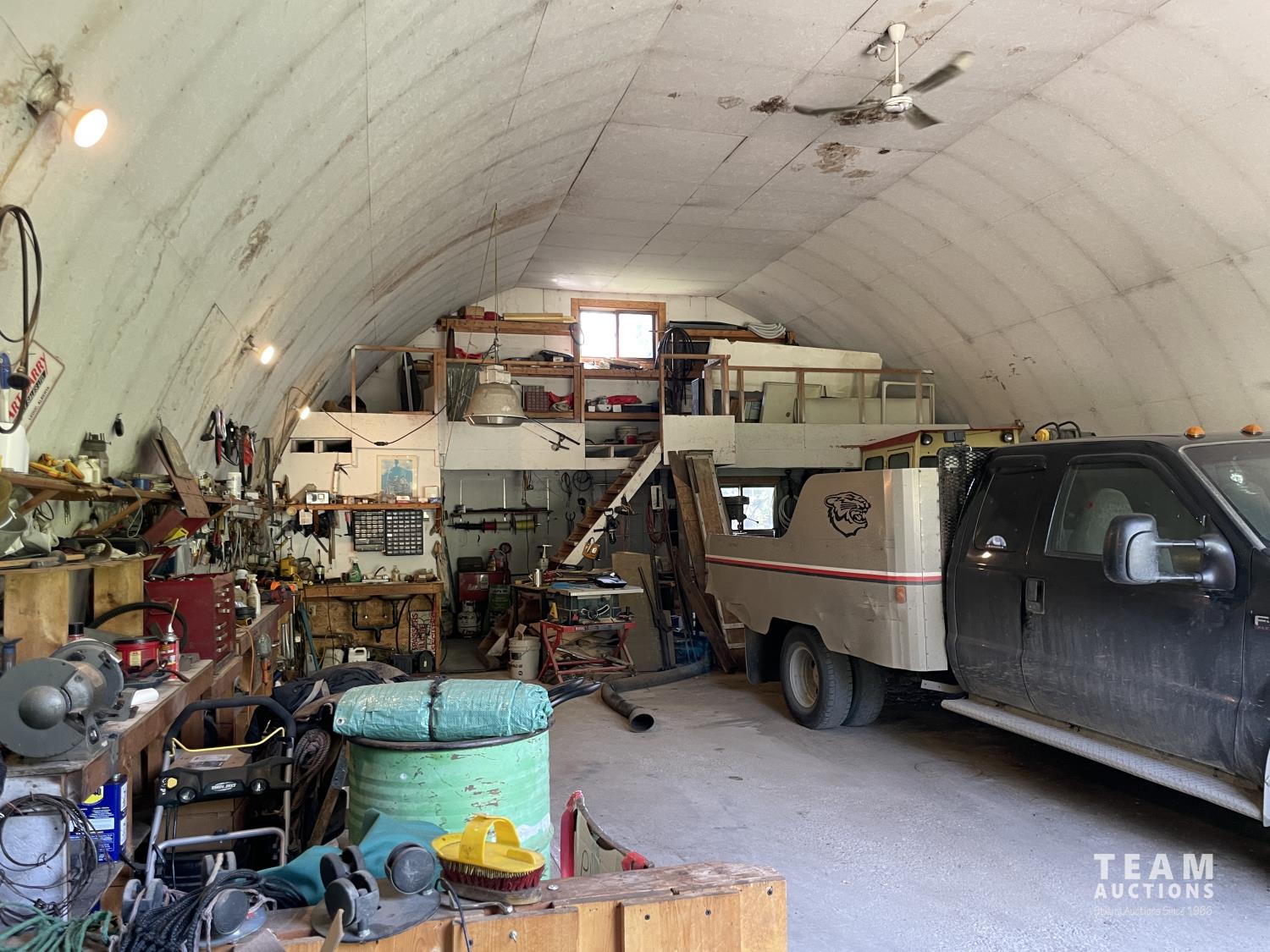 220 Volt Wiring, Heated, 2 piece bathroom, small mezzanine lined with osb sheeting overhead door, quonset style measurement (taken at ground level) 32 X 48 Ft
