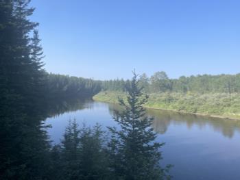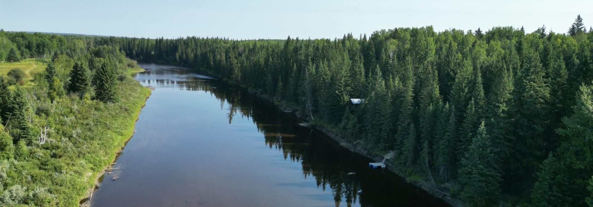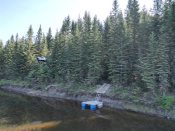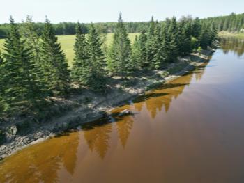Artesian water well system is equipped with overflow that drains into the draw north of home, which then drains into the Pembina. This property offers easy access to the Pembina River, perfect for outdoor activities.