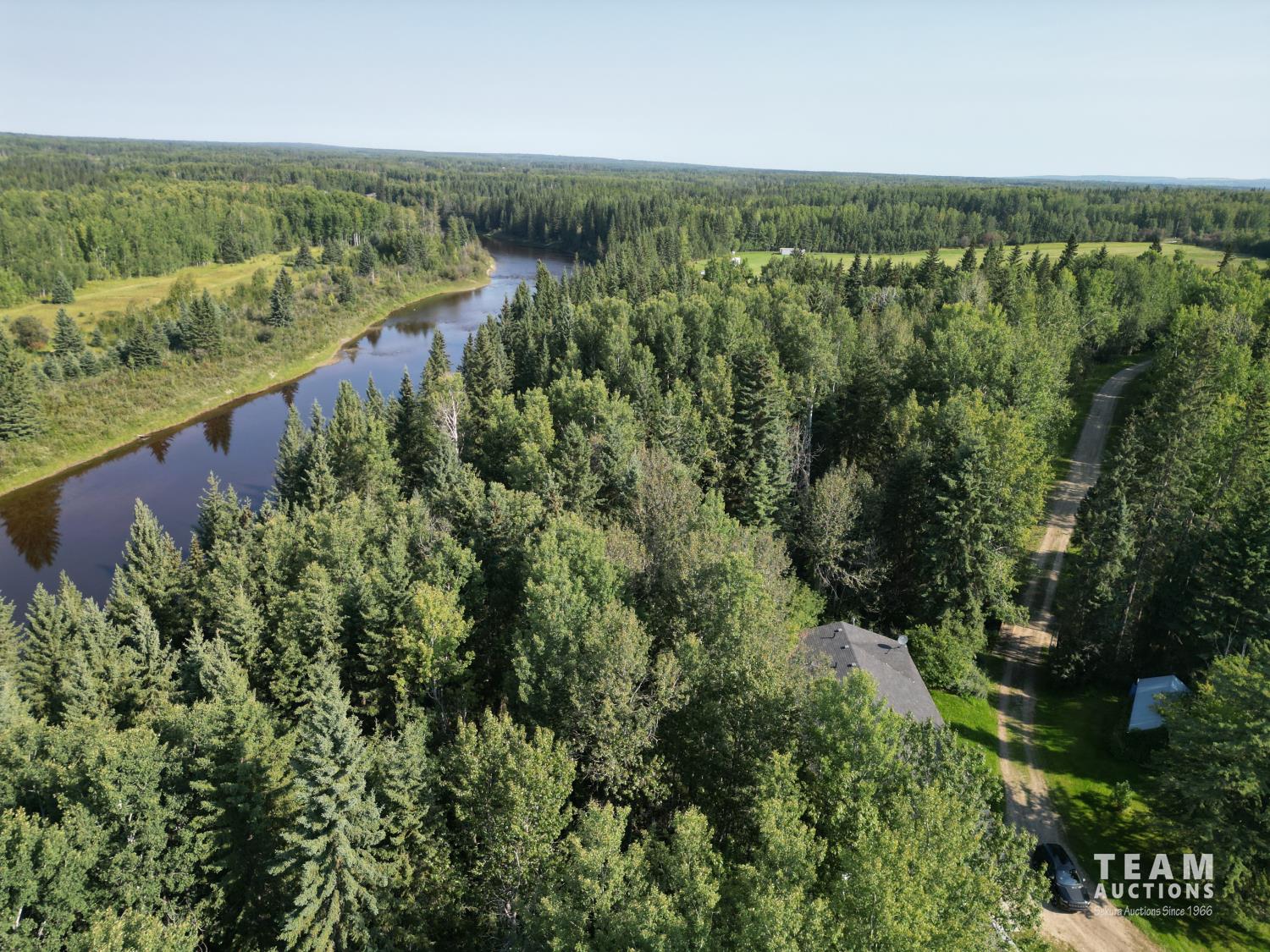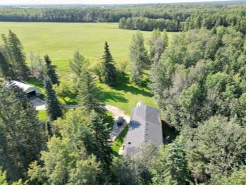 Riverfront on the Pembina! Tremendous potential for recreational activities. 127± acres. The charming bungalow was built in 2011 and features two bedrooms, one bathroom, kitchen with an island, living room, dining area and a full unfinished basement. The home boasts beautiful oak cabinetry. Attached to the bungalow is a 2 bay carport. One bay is currently used for parking and the other is used as a covered outdoor patio. Outside, on the banks of the Pembina, is an awesome gazebo complete with a fire pit, concrete floor, and power supply, offering a perfect spot to relax and enjoy the surroundings. Attached to the gazebo is a sitting area that overlooks the serene river. A dock that is not permanently anchored lies down below the gazebo.