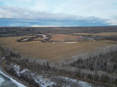 Riverfront land with 152.04± deeded acres (55022 RR 144A on Pt NE5-55-14-W5) & 25.5± acre long term grazing license (FGL 950012) on SE5-55-14-W5. Developed farm site with home, barn, workshop with living quarters, welding shop and large enclosed metal clad pole shed.