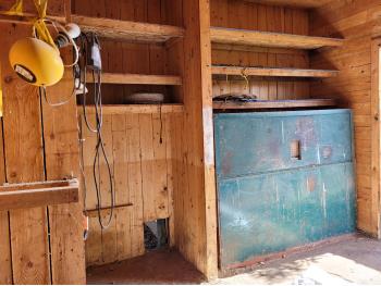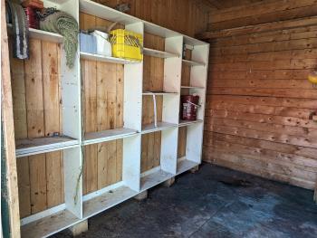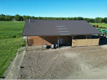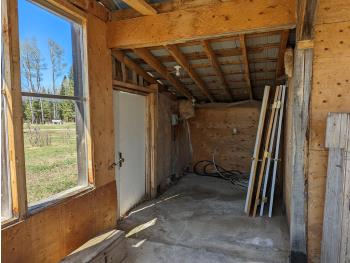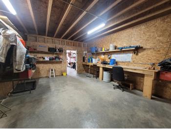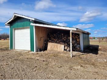 - The south lean-to has a 20 ft x 40 ft enclosed shop with 220 wiring and manual overhead door. The balance of that side is open lean-to.