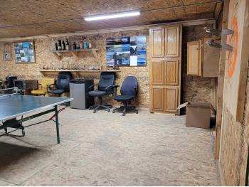- The 20 ft x 40 ft mezzanine area over the enclosed shop/storage areas is the "man cave" area.