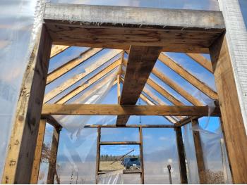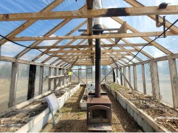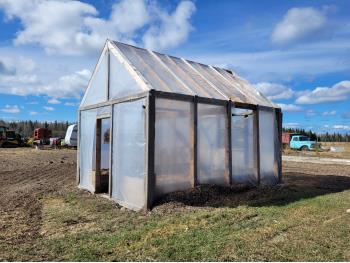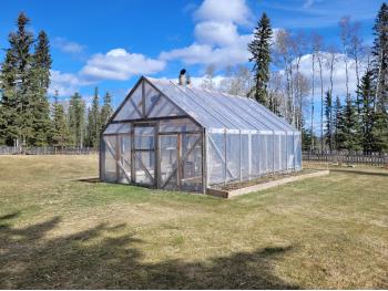 Other buildings on the property include a chicken coop, two greenhouses, and a garden shed with an overhead door and wood storage and outdoor wood boiler.