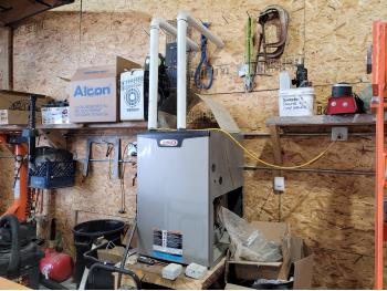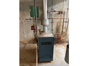 - In-floor heat (outdoor "HEATMOR" wood boiler) with glycol in lines. There is back up forced air furnace for those times when you are away.