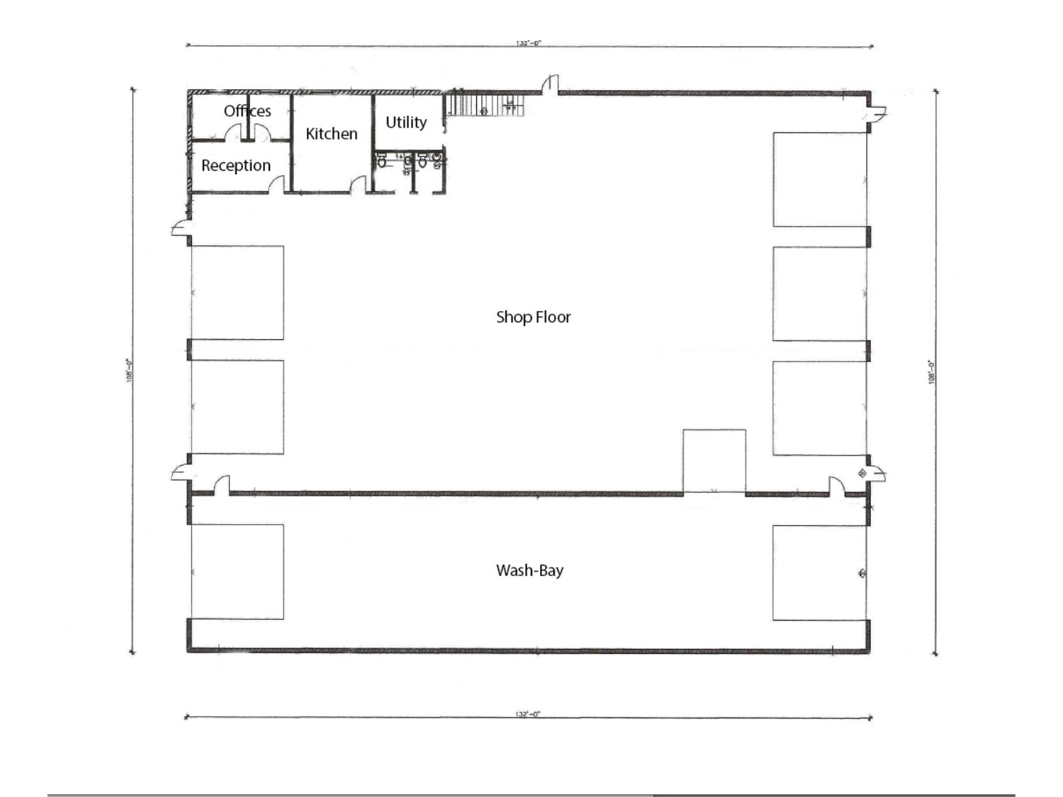 - 5HP two stage 80 gallon tank air compressor (17.2 CFM @ 175psi) mounted in mezzanine