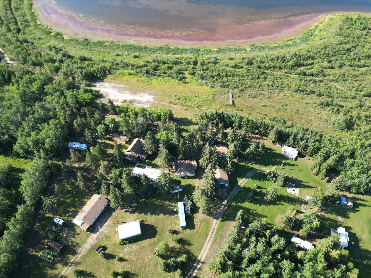 This property has 4 cabins, 1 manufactured home, 2 garages on Muriel Lake. This unique lakefront property is set up for a family retreat.
