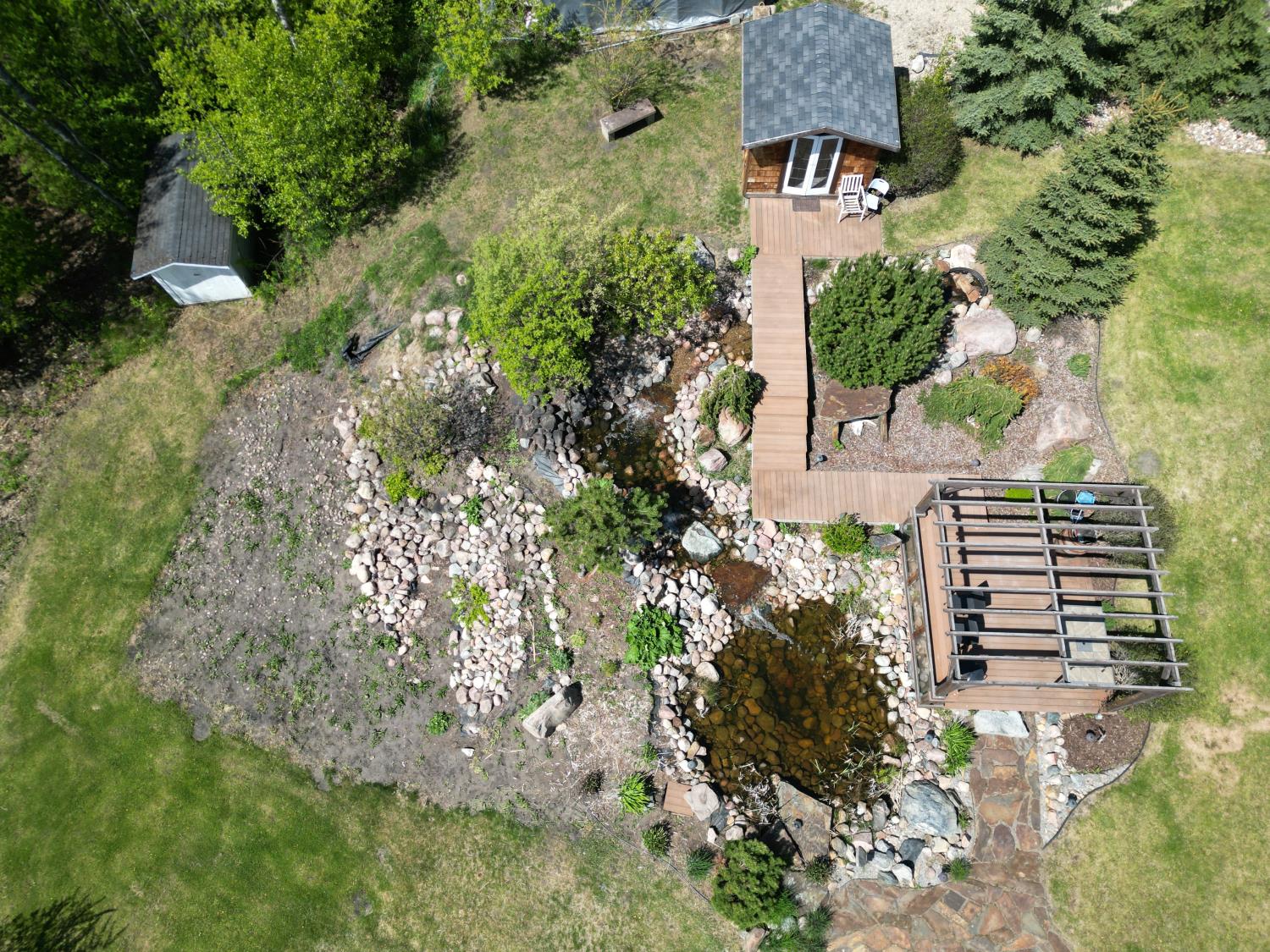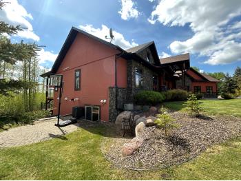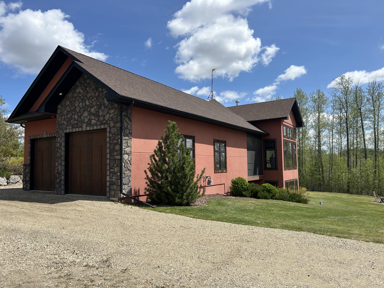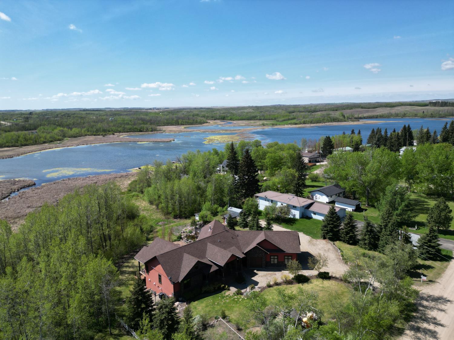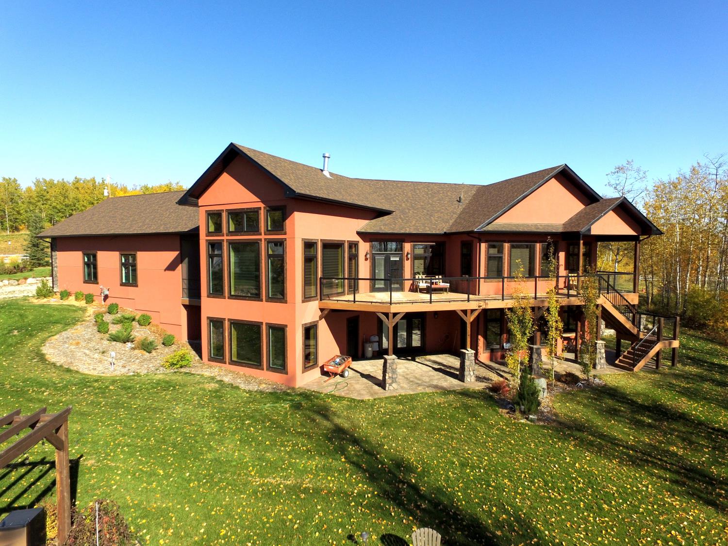 SELLING WAY BELOW APPRAISED VALUE ON FILE. ACREAGE-STYLE LAKE LIVING. Rare 2.00 +/- acre property with a stunning executive walk-out bungalow — 5 bedrooms, 3.5 bathrooms and luxury at every turn! Parklike landscaping, water features and a world-class resort vibe set the stage. Built with energy-efficient ICF block foundation and walls, this home features a chef’s kitchen with petrified wood and granite sinks, double-edged granite counters and custom distressed cabinetry. The living room showcases a sleek linear fireplace surrounded by custom granite, marble, and slate wildlife artistry. The dream primary suite offers a huge soaker tub, double sinks, a walk-in shower, and a massive closet. Soak in lake views from the sprawling 35x17 south-facing deck or kick back in the private screened-in Sun/BBQ room. The fully finished walk-out and self contained basement with separate entrance is loaded with features: 10’ ceilings, a full second kitchen & bar with leathered granite, additional laundry washer/dryer combo, a gym room with backyard views, two more bedrooms, two oversized rec rooms, in-floor heat, and a full bath. Triple pane windows, central Air & roughed in for Hot tub. Ample opportunity here to generate extra income and revenue in such a highly sought after recreational destination conveniently located between Calgary and Edmonton. Build your own lakefront dock and boat slip. Some local residents also use the county trail and municipal reserve area just a short walk down a nature trial to enjoy the lake and dock boats. A super cute guest casita is ideally located right next to the water feature and yoga platform. Tucked away on the quiet SE end of the lake where birdwatching, privacy and fishing are all top of list. Your dream home is waiting!