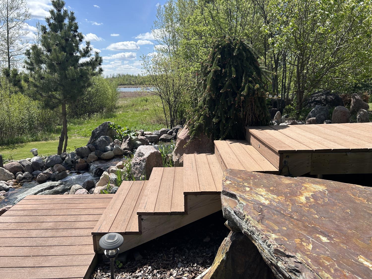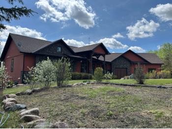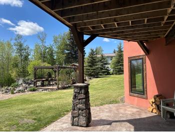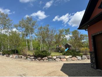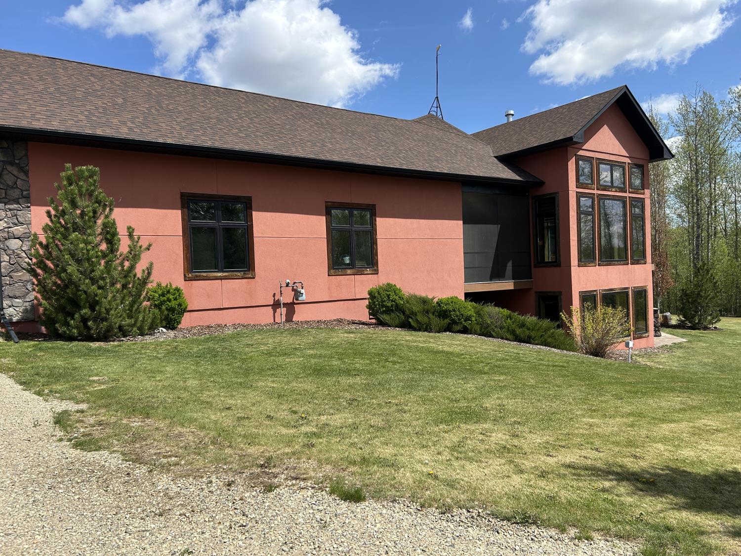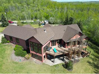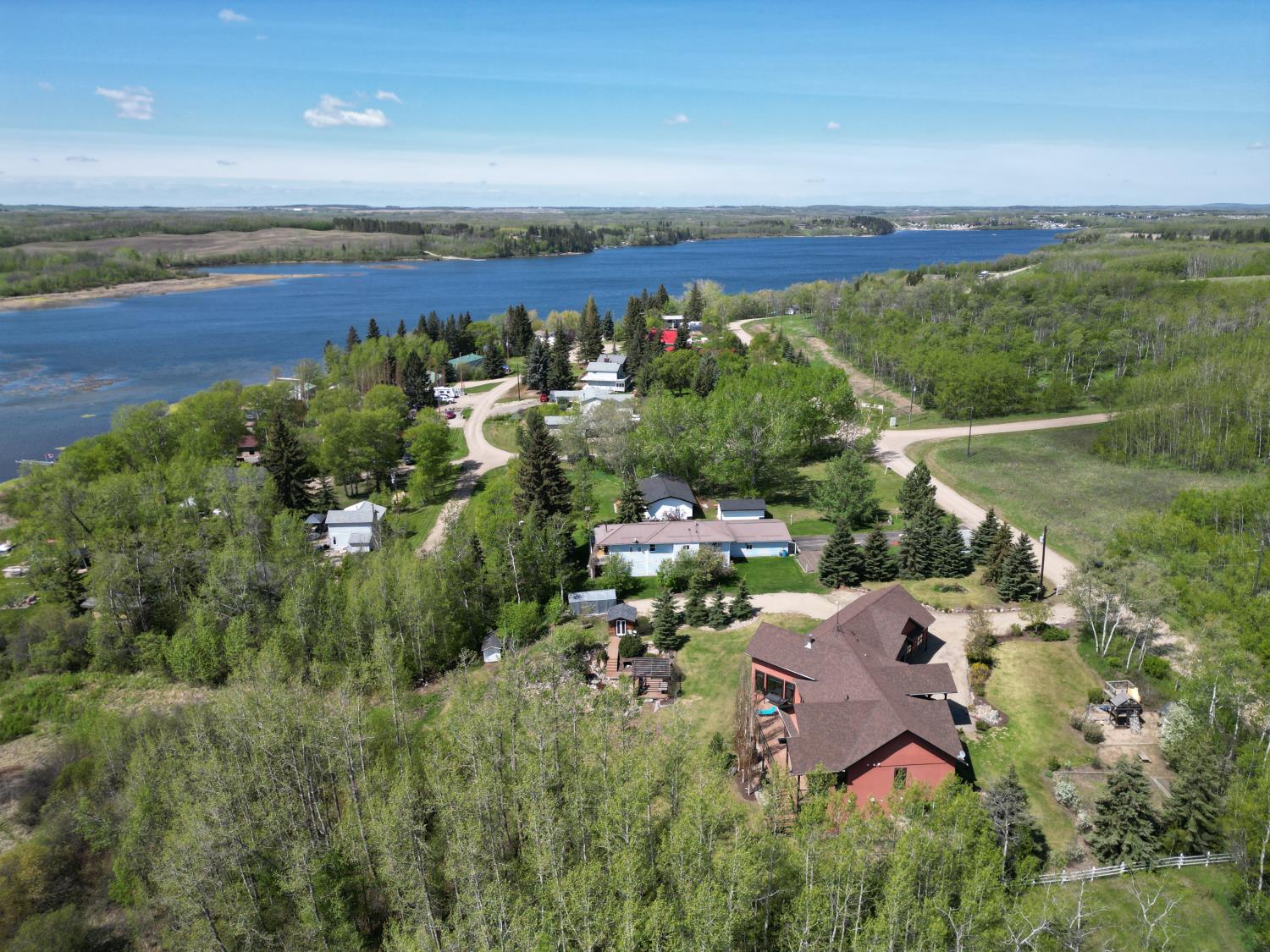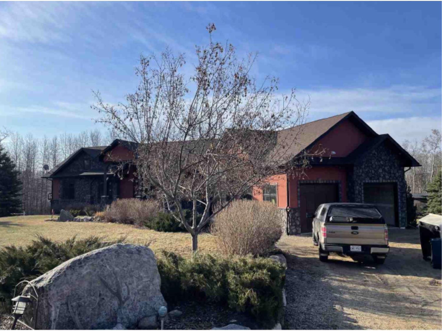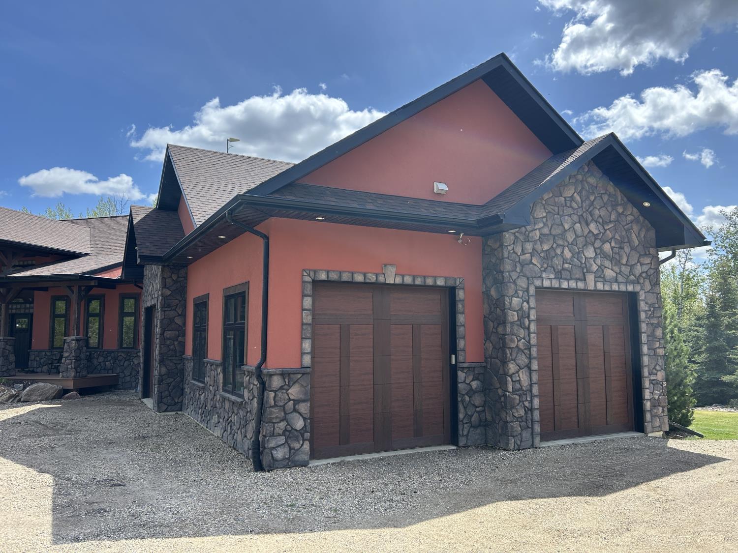 SELLING WAY BELOW APPRAISED VALUE ON FILE. ACREAGE-STYLE LAKE LIVING. Rare 2.00 +/- acre property with a stunning executive walk-out bungalow — 5 bedrooms, 3.5 bathrooms and luxury at every turn! Parklike landscaping, water features and a world-class resort vibe set the stage. Built with energy-efficient ICF block foundation and walls, this home features a chef’s kitchen with petrified wood and granite sinks, double-edged granite counters and custom distressed cabinetry. The living room showcases a sleek linear fireplace surrounded by custom granite, marble, and slate wildlife artistry. The dream primary suite offers a huge soaker tub, double sinks, a walk-in shower, and a massive closet. Soak in lake views from the sprawling 35x17 south-facing deck or kick back in the private screened-in Sun/BBQ room. The fully finished walk-out and self contained basement with separate entrance is loaded with features: 10’ ceilings, a full second kitchen & bar with leathered granite, additional laundry washer/dryer combo, a gym room with backyard views, two more bedrooms, two oversized rec rooms, in-floor heat, and a full bath. Triple pane windows, central Air & roughed in for Hot tub. Ample opportunity here to generate extra income and revenue in such a highly sought after recreational destination conveniently located between Calgary and Edmonton. Build your own lakefront dock and boat slip. Some local residents also use the county trail and municipal reserve area just a short walk down a nature trial to enjoy the lake and dock boats. A super cute guest casita is ideally located right next to the water feature and yoga platform. Tucked away on the quiet SE end of the lake where birdwatching, privacy and fishing are all top of list. Your dream home is waiting!
