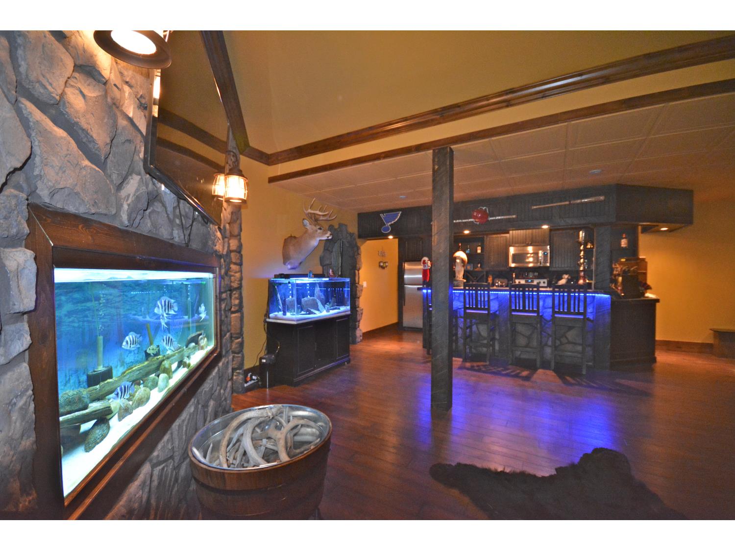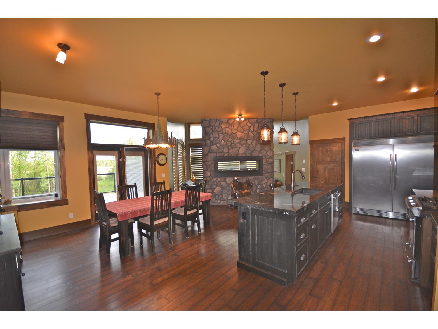 Air Conditioner, Bar, Ceiling 10 ft., Closet Organizers, Deck, Granite Counters, Hardwood Flooring, HRV System, Laundry-Same Floor, Vaulted Ceiling, Vinyl Plank Flooring, Wet Bar, Fireplace in Great Room, Carpet, Tile, Master Chef Kitchen, Custom Cabinets Throughout, Crown Moldings, Linear Fireplace, Huge Soaker Tub in Master Bedroom, Walk-in Closet, Central Vac, and so much more