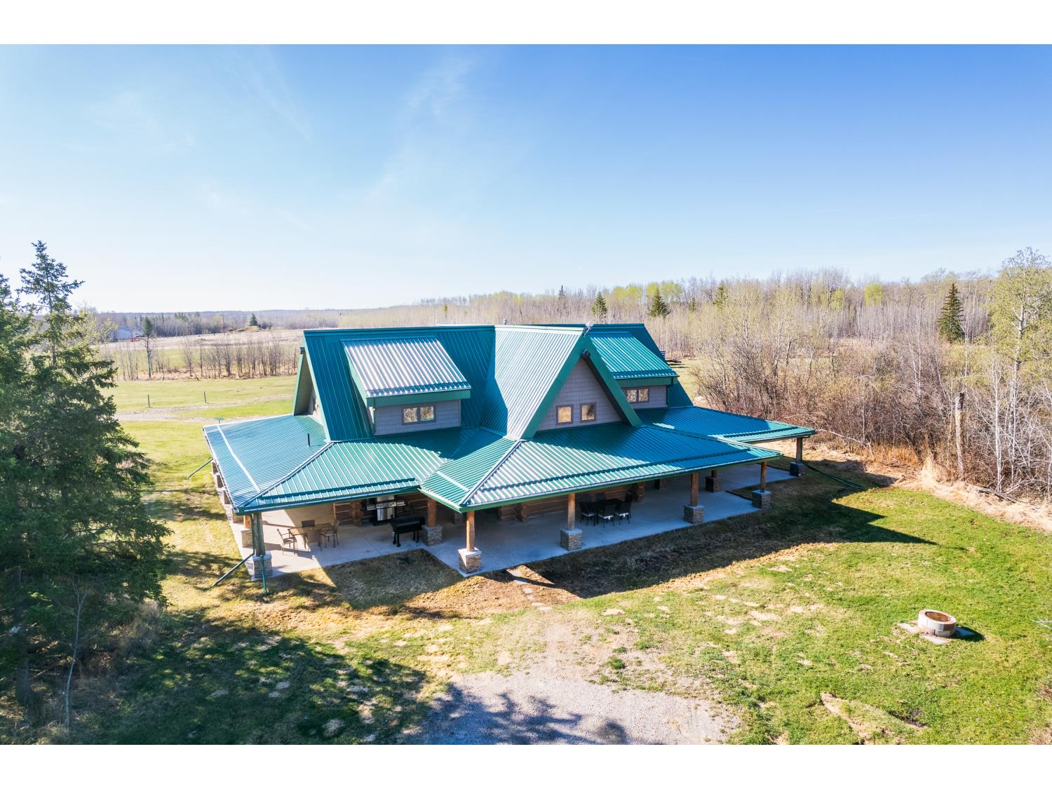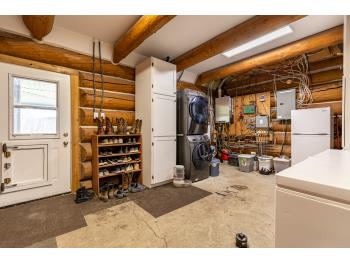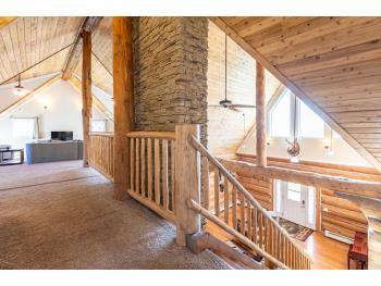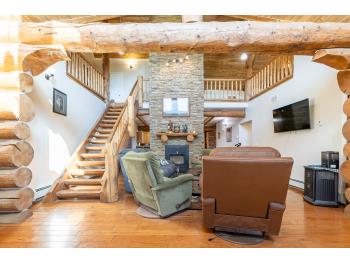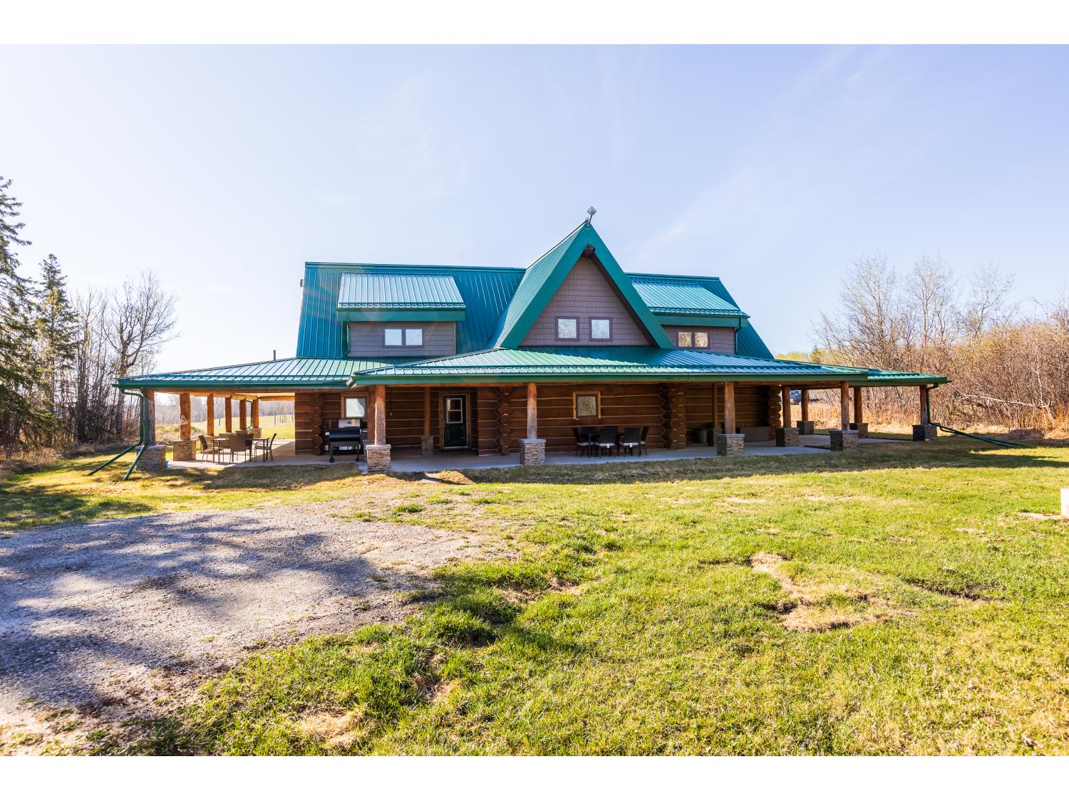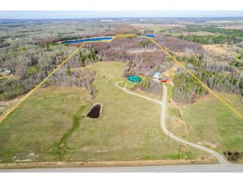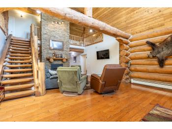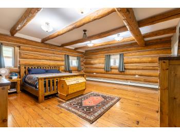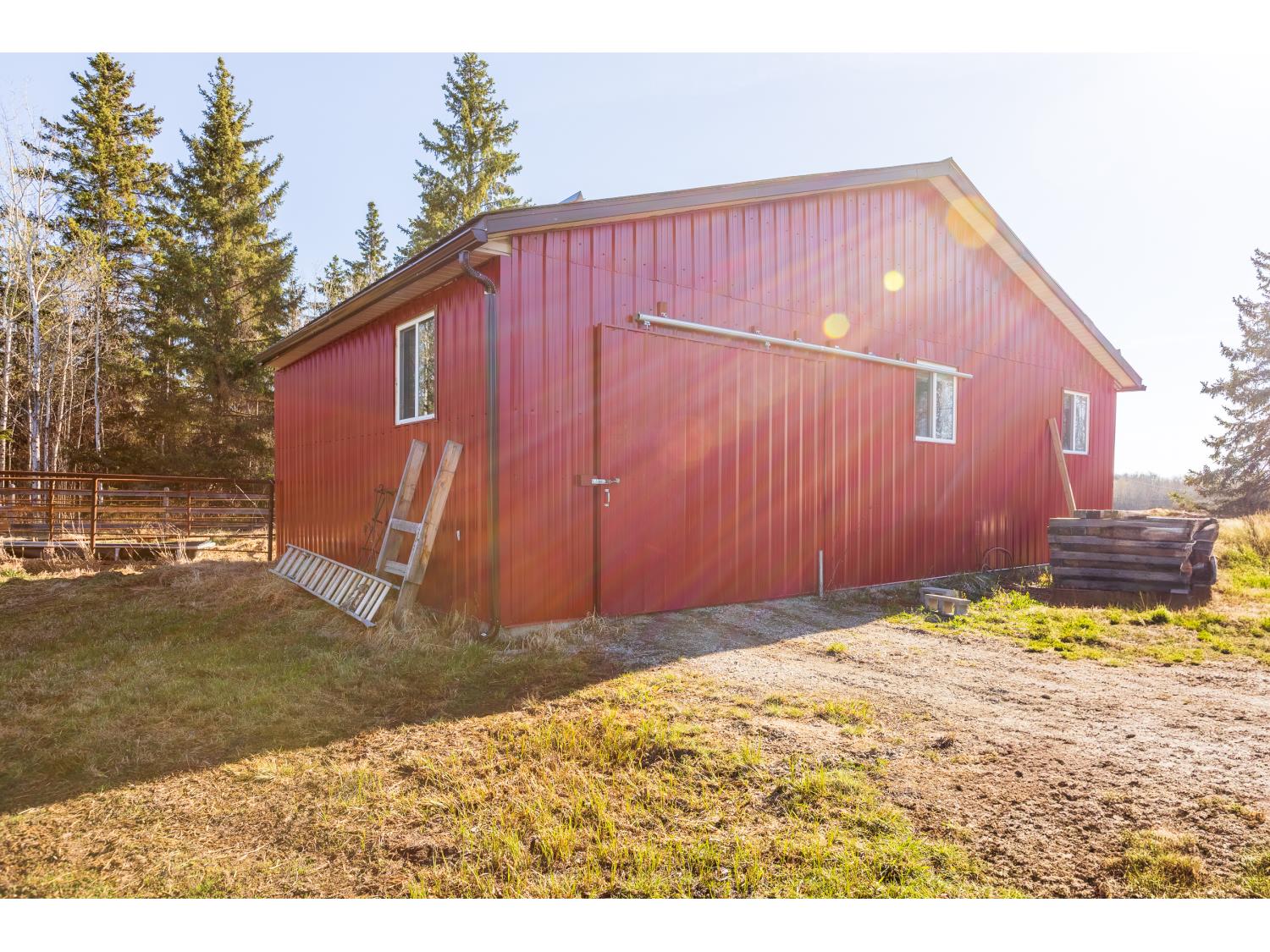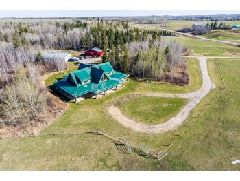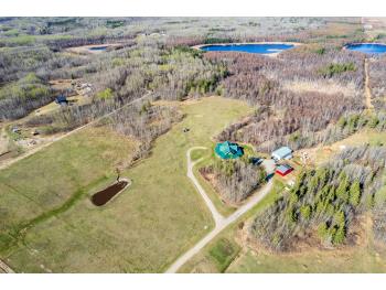 This remarkable 53-acre property sits on a paved road and features an incredible 3,700 sq ft custom log home, built with care and attention to detail by the current owners between 2007–2015. The home blends rustic charm with modern design, including soaring ceilings, massive exposed beams, and oversized windows that flood the interior with natural light and provide beautiful views of the surrounding landscape. The combination of modern finishes creates a warm, inviting atmosphere while offering the comforts of contemporary living. The main floor is approximately 2,000 sq ft and features hardwood floors, an open-concept kitchen, dining, and living area centered around a stunning double-sided wood fireplace, and space for both entertaining and day-to-day family life. A large mudroom, two spacious bedrooms and two full bathrooms complete this level. Upstairs, the 1,700 sq ft upper level is fully carpeted for comfort and includes two more bedrooms, a dedicated office, an additional full bathroom, and a large family or flex room overlooking the main living area below. A wrap-around covered porch encircles the home, offering multiple seating areas to enjoy sunrises, sunsets, or quiet moments in nature. The exterior is finished with a durable metal roof, ensuring low maintenance for years to come. The home is serviced by a drilled water well with a reverse osmosis system and a septic pump-out system installed approximately 10 years ago. A long private driveway winds through the property and leads to the house, with teardrop loops at both the front and back for easy vehicle access. At the rear of the home sits a 30x60 shop—fully insulated and drywalled, with concrete floors and a large overhead door—ideal for equipment storage, hobby farming, or a home-based business. A 24x38 outbuilding offers even more flexibility and could be used for horse stalls, additional storage, or workshop space. Much of the property is fenced with 4-wire strand, making it suitable for livestock. A natural wetland area runs along the back portion, and the land features a mix of open pasture and treed areas, offering both function and privacy. This exceptional property combines natural beauty, modern comfort, and rural practicality.