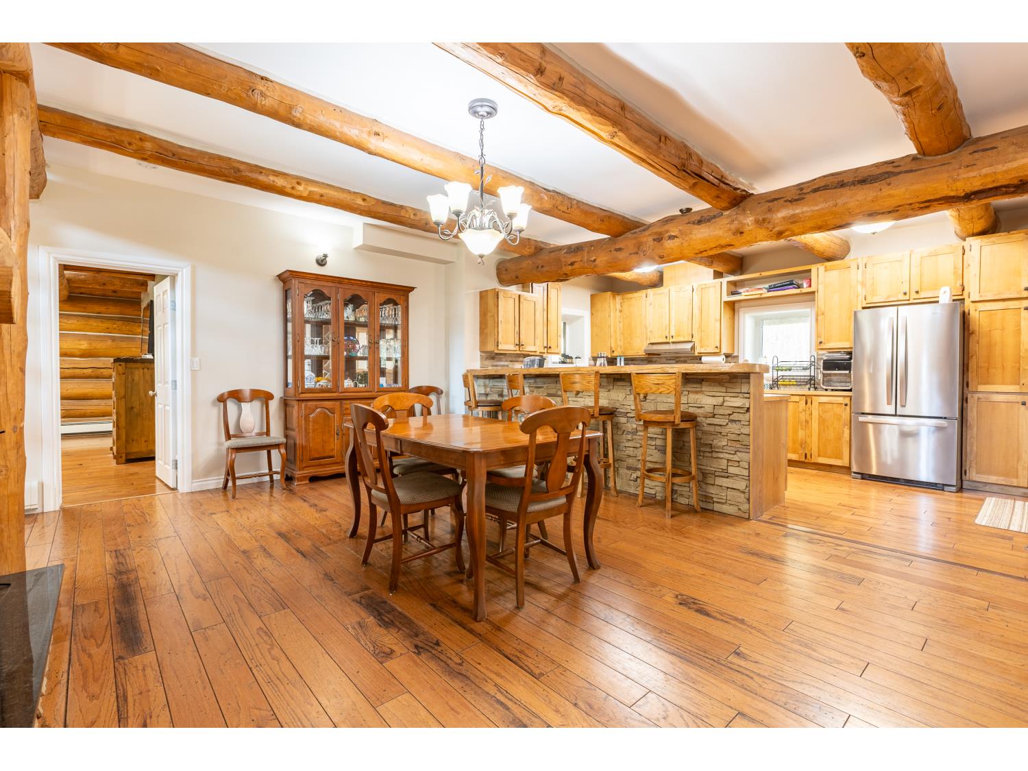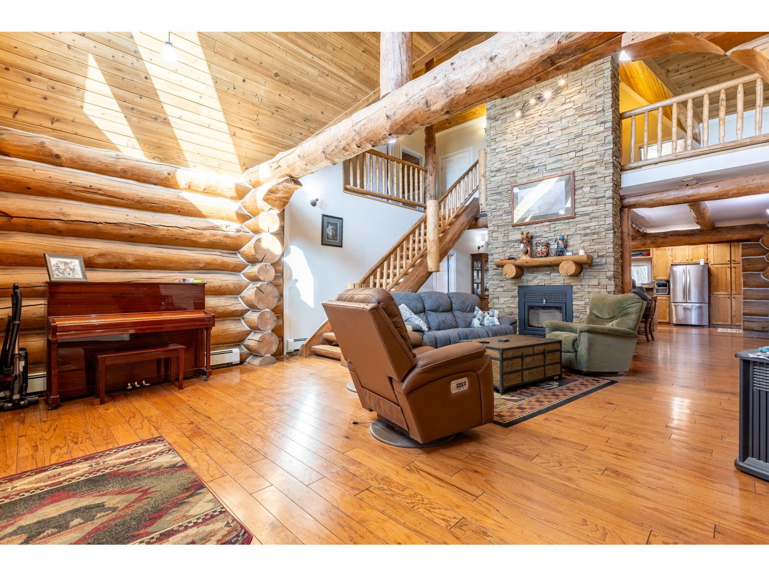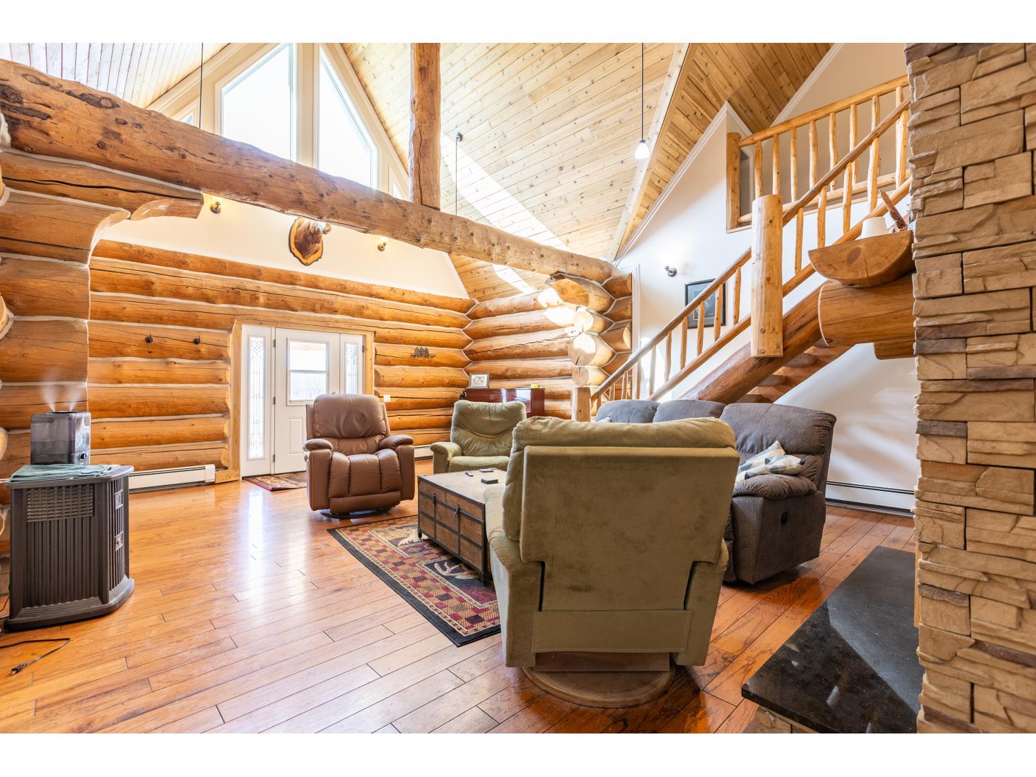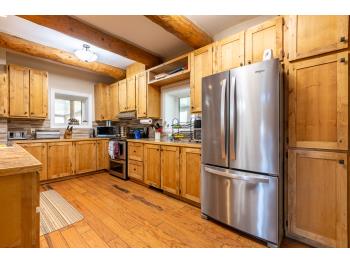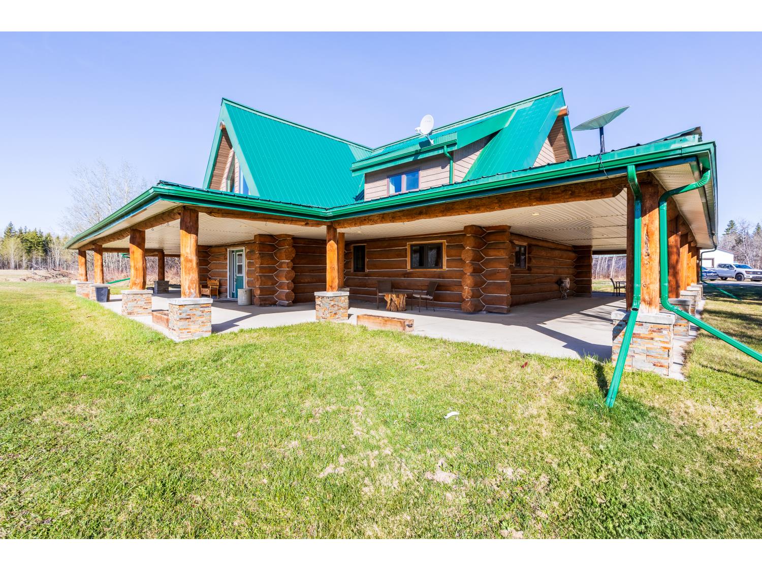 This remarkable 53-acre property sits on a paved road and features an incredible 3,700 sq ft custom log home, built with care and attention to detail by the current owners between 2007–2015. The home blends rustic charm with modern design, including soaring ceilings, massive exposed beams, and oversized windows that flood the interior with natural light and provide beautiful views of the surrounding landscape. The combination of modern finishes creates a warm, inviting atmosphere while offering the comforts of contemporary living. The main floor is approximately 2,000 sq ft and features hardwood floors, an open-concept kitchen, dining, and living area centered around a stunning double-sided wood fireplace, and space for both entertaining and day-to-day family life. A large mudroom, two spacious bedrooms and two full bathrooms complete this level. Upstairs, the 1,700 sq ft upper level is fully carpeted for comfort and includes two more bedrooms, a dedicated office, an additional full bathroom, and a large family or flex room overlooking the main living area below. A wrap-around covered porch encircles the home, offering multiple seating areas to enjoy sunrises, sunsets, or quiet moments in nature. The exterior is finished with a durable metal roof, ensuring low maintenance for years to come. The home is serviced by a drilled water well with a reverse osmosis system and a septic pump-out system installed approximately 10 years ago. A long private driveway winds through the property and leads to the house, with teardrop loops at both the front and back for easy vehicle access. At the rear of the home sits a 30x60 shop—fully insulated and drywalled, with concrete floors and a large overhead door—ideal for equipment storage, hobby farming, or a home-based business. A 24x38 outbuilding offers even more flexibility and could be used for horse stalls, additional storage, or workshop space. Much of the property is fenced with 4-wire strand, making it suitable for livestock. A natural wetland area runs along the back portion, and the land features a mix of open pasture and treed areas, offering both function and privacy. This exceptional property combines natural beauty, modern comfort, and rural practicality.