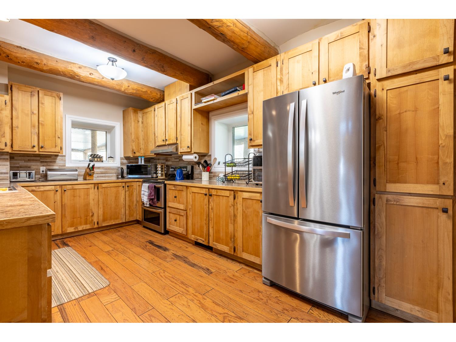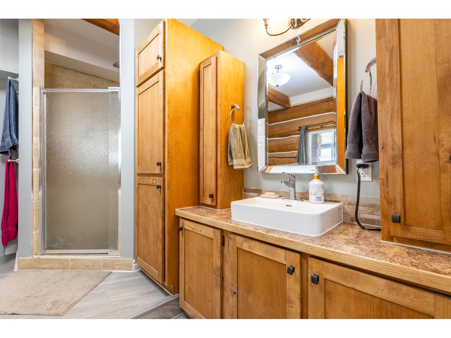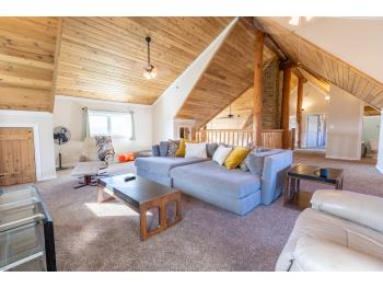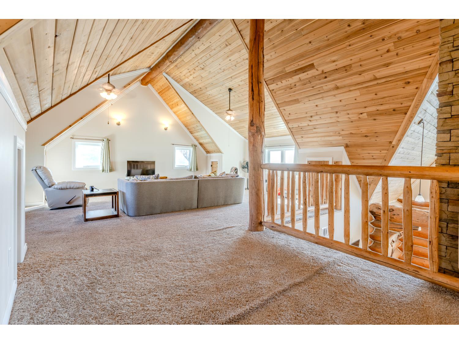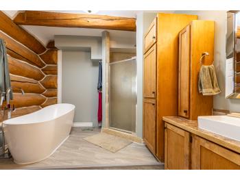 This remarkable 53-acre property sits on a paved road and features an incredible 3,700 sq ft custom log home, built with care and attention to detail by the current owners between 2007–2015. The home blends rustic charm with modern design, including soaring ceilings, massive exposed beams, and oversized windows that flood the interior with natural light and provide beautiful views of the surrounding landscape. The combination of modern finishes creates a warm, inviting atmosphere while offering the comforts of contemporary living. The main floor is approximately 2,000 sq ft and features hardwood floors, an open-concept kitchen, dining, and living area centered around a stunning double-sided wood fireplace, and space for both entertaining and day-to-day family life. A large mudroom, two spacious bedrooms and two full bathrooms complete this level. Upstairs, the 1,700 sq ft upper level is fully carpeted for comfort and includes two more bedrooms, a dedicated office, an additional full bathroom, and a large family or flex room overlooking the main living area below. A wrap-around covered porch encircles the home, offering multiple seating areas to enjoy sunrises, sunsets, or quiet moments in nature. The exterior is finished with a durable metal roof, ensuring low maintenance for years to come. The home is serviced by a drilled water well with a reverse osmosis system and a septic pump-out system installed approximately 10 years ago. A long private driveway winds through the property and leads to the house, with teardrop loops at both the front and back for easy vehicle access. At the rear of the home sits a 30x60 shop—fully insulated and drywalled, with concrete floors and a large overhead door—ideal for equipment storage, hobby farming, or a home-based business. A 24x38 outbuilding offers even more flexibility and could be used for horse stalls, additional storage, or workshop space. Much of the property is fenced with 4-wire strand, making it suitable for livestock. A natural wetland area runs along the back portion, and the land features a mix of open pasture and treed areas, offering both function and privacy. This exceptional property combines natural beauty, modern comfort, and rural practicality.
