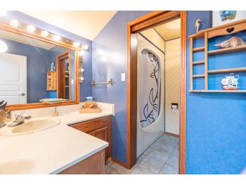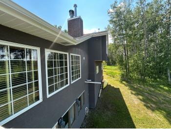 The 1980s-built home was moved onto the property around 2013 and features a spacious layout across three levels, including a walk-out lower level. The main level offers a Sunken living room, office-room, an oak kitchen with updated appliances, and a cozy wood stove (plus natural gas heating). Ceramic tile and carpet flooring. Upstairs, you will find three bedrooms and a full 4 – piece bath. The primary suite has a large ensuite and walk-in closet. The partially finished lower level includes a second wood stove, plumbing rough-ins, and in-floor heating-ready to be finished as you wish as well as a self-contained 2 – bedroom suite with separate entrance offers additional space and income potential (rented for $1,500/Month). Please note: the suite is not currently a legal suite, and prospective buyers are advised to consult with the local municipality regarding permitted use and requirements for compliance. Utilities are available for further expansion, with water and power ready for multiple hydrants. Additional features include; natural gas BBQ and hot tub hookups, Laundry/mudroom with 2 – piece bath, wood and forced-air heat + newer Lennox furnace. Automatic solar-powered gates. Several potential campsite areas for up to 8 – 10 stall sites for RVs or campers.
