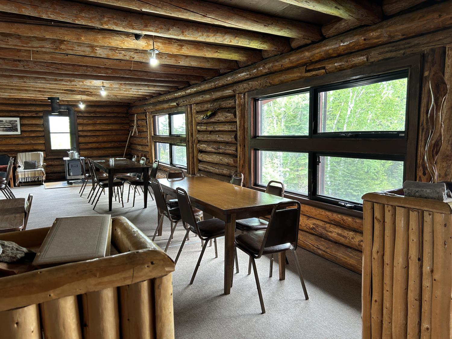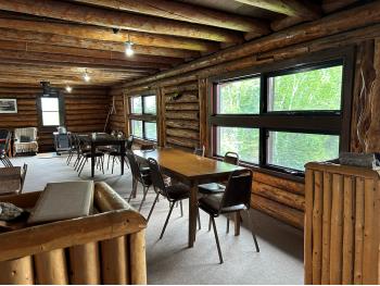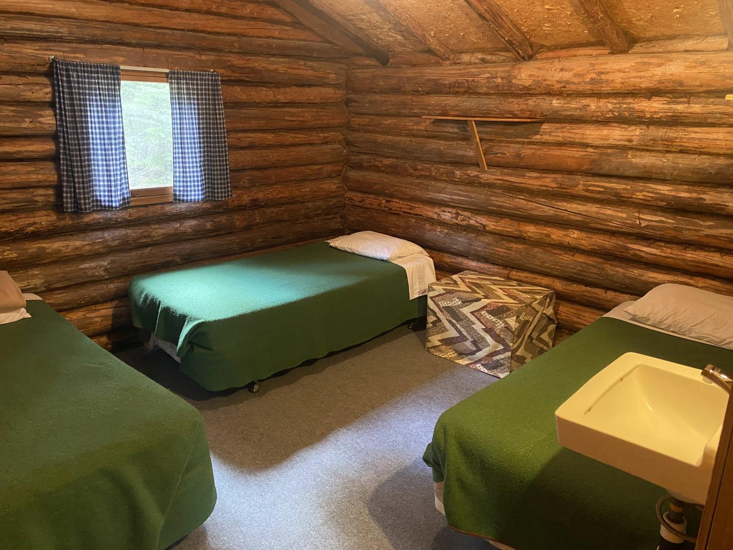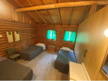 Cabins are built of rustic log in the Northwoods style. Each one faces the lake with windows offering a breathtaking view of the water. All are completely equipped with electric lights, hot and cold running water, oil heat, shower, flush toilet, lavatory and single beds. There is a total guest capacity of 28 and total staff capacity of 7.