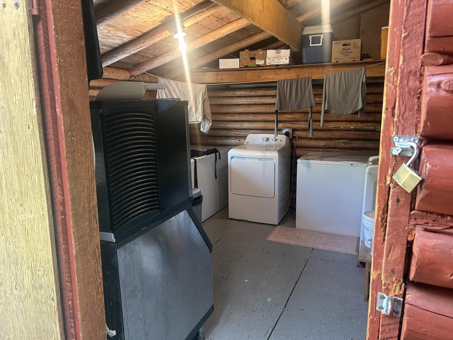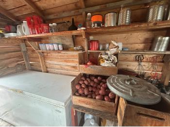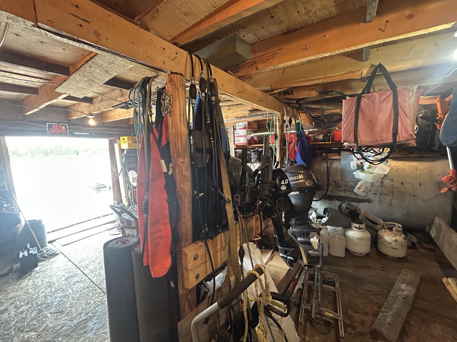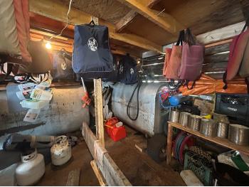 There is fuel storage offsite at North Spirit Lake for Diesel and Gasoline to be accessed by winter road for filling. Fuel is then transported to lodge by boat in drums. Lodge is primarily heated with wood stove and secondary electric heaters. Cabins are heated with oil stoves.