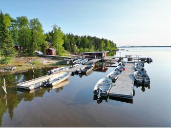 North Spirit Lake Lodge is located 110 miles north of Red Lake, Ontario and is accessible by plane only for the fishing season or winter road in the off season to bring in supplies. North Spirit Lake Airport (YNO) is located approximately 2 nautical miles from the lodge and has a 3,500 ft compacted all season gravel landing strip. There are two vehicles included to taxi guest and supplies from the airport to the dock (approximately 300 yards) to board the boats to the lodge. At the docks there are approximately 20 aluminum boats and motors ranging from 16 – 20 ft and 4 – 90 HP. There are also four additional registered boat caches with boats only. 2 ATV's are included to transport supplies from the docks to the lodge and assist in cabin housekeeping.