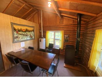 There is fuel storage offsite at North Spirit Lake for Diesel and Gasoline to be accessed by winter road for filling. Fuel is then transported to lodge by boat in drums. Lodge is primarily heated with wood stove and secondary electric heaters. Cabins are heated with oil stoves.