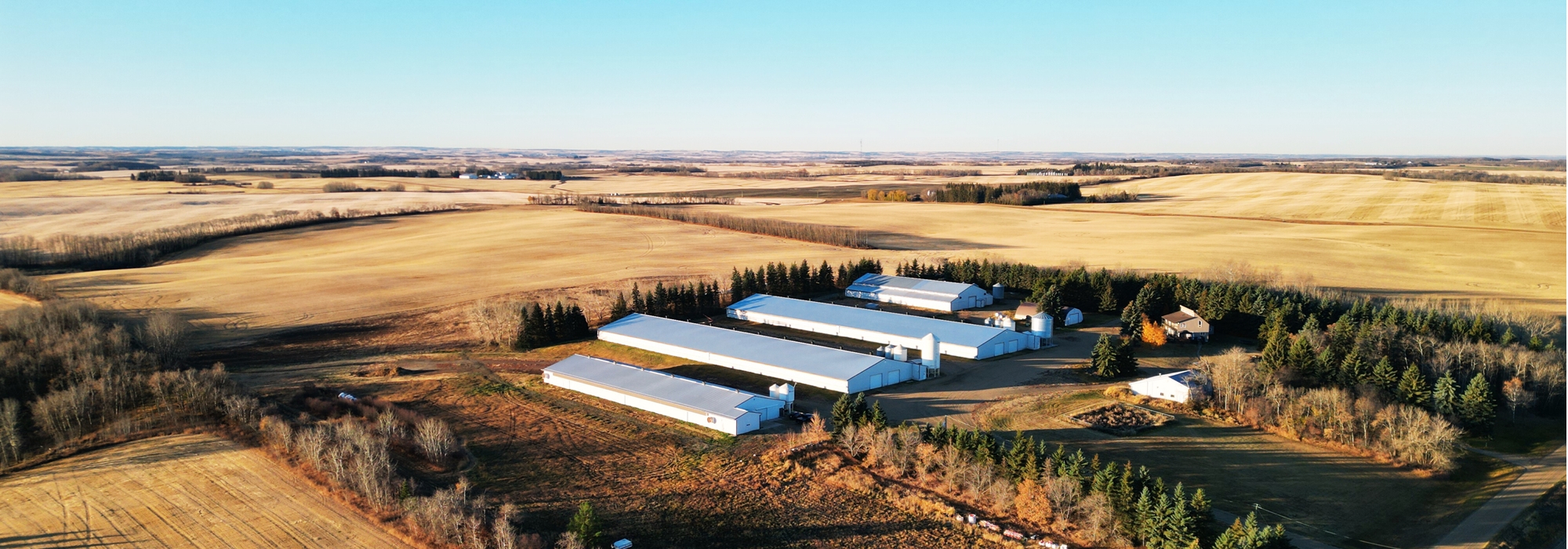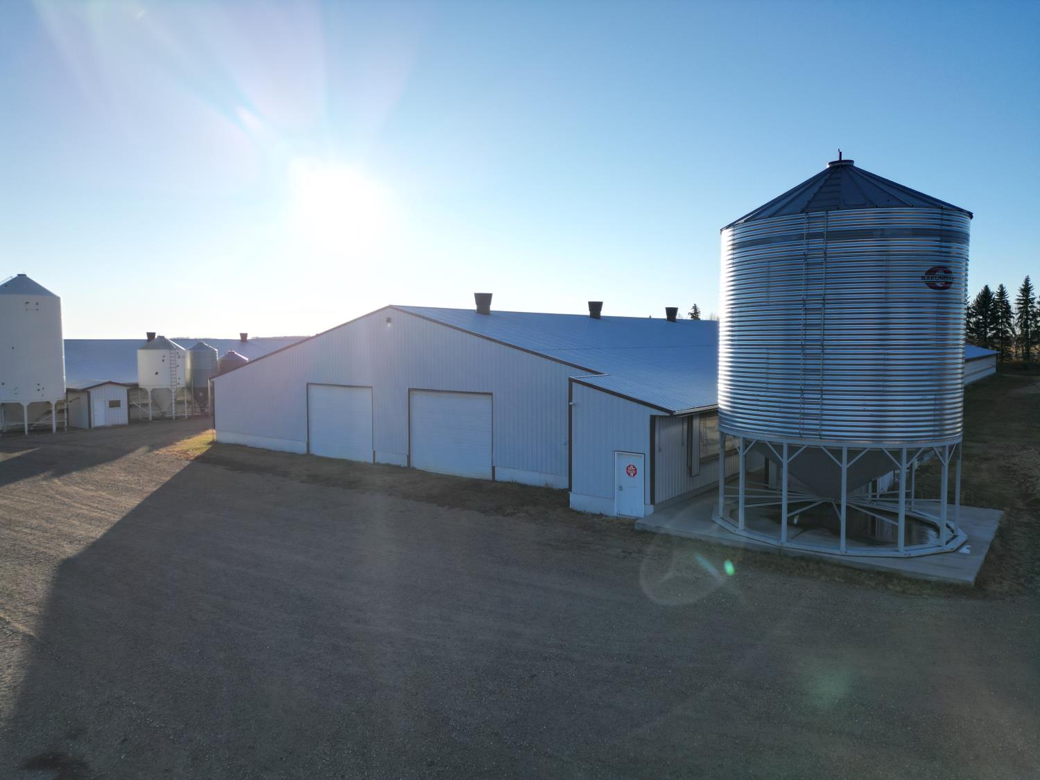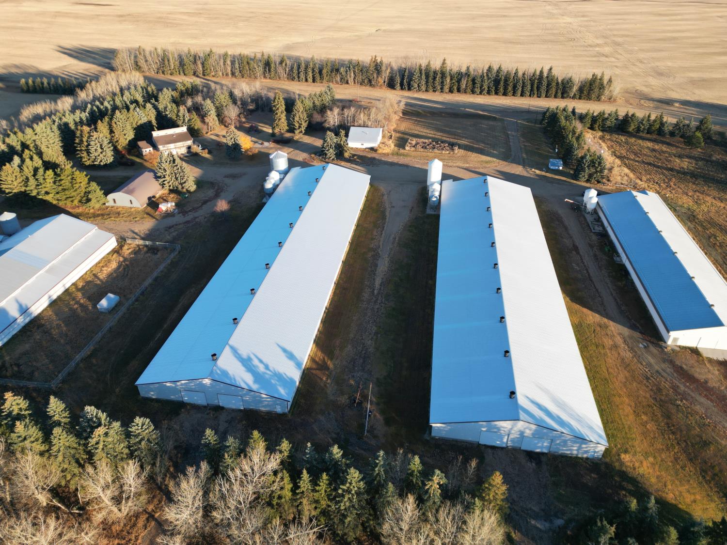 This 78± acre farm with a 5 – bed, 4 – bath house, 4 barns, and outbuildings is in a convenient area, northeast of Ponoka and just off Hwy 611. Surrounded by a mature shelterbelt, landscaped perfectly on a well sloped and drained yard. Plenty of room for large equipment and heavy trucks to easily move around the yard and barns with well graveled driving areas to avoid the springtime messes. The land has good soil, is well drained and the balance of land is cultivated. There are 4 barns that have been excellently taken care of and are currently setup for turkey production but can easily be converted to broiler barns or a variety of other uses. There is also a 1500sq ft heated shop with concrete floor that has a lean-to addition of 700sq ft (not heated). Other outbuildings consist of a generator room and Quonset building with electricity and natural gas.