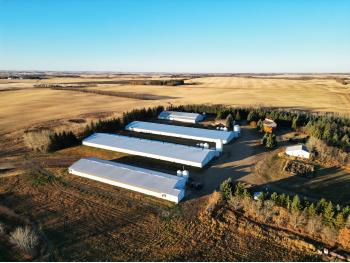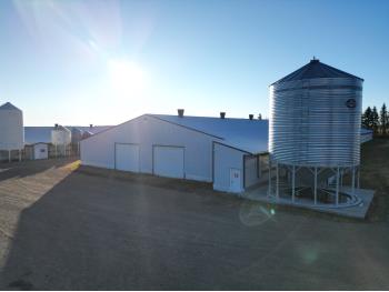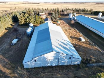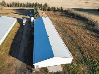 This 78± acre farm with a 5 – bed, 4 – bath house, 4 barns, and outbuildings is in a convenient area, northeast of Ponoka and just off Hwy 611. Surrounded by a mature shelterbelt, landscaped perfectly on a well sloped and drained yard. Plenty of room for large equipment and heavy trucks to easily move around the yard and barns with well graveled driving areas to avoid the springtime messes. The land has good soil, is well drained and the balance of land is cultivated. There are 4 barns that have been excellently taken care of and are currently setup for turkey production but can easily be converted to broiler barns or a variety of other uses. There is also a 1500sq ft heated shop with concrete floor that has a lean-to addition of 700sq ft (not heated). Other outbuildings consist of a generator shed, with a 75 kV automated generator and Quonset building with electricity and natural gas. There is a lease quota available to turn this into an immediate going-concern operation, please inquire with the Hank Van Hierden (Realtor) at 403 – 308 – 1737