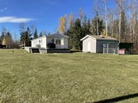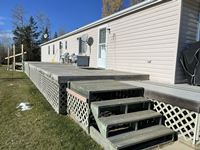 THE HOME Well kept, updated 1184 sq ft 3 bed 2 bath 1988 Shelter Industries Inc mfg home 2010 major renovations - Kitchen cabinetry, bathroom vanities, bathroom tub in main bath, shower door in en-suite, sink, toilets in both bathrooms, flooring (carpet, laminate, and vinyl tiles). Walls in primary bedroom and the second bedroom were redone with drywall. Vinyl siding. Interior painted. 2019 - south side of home’s roof & the house storage shed was re-shingled. Kitchen / Dining - Bright spacious with vinyl tile flooring, updated white cabinetry, pantry, skylight. Stove & hood fan new in 2010, Fridge new in 2020. Living room with vaulted ceiling Back entry: electric hot water heater new in 2018. Furnace (original) was serviced in Sep 2021. Electrical panel is located in this room. Counter is included. Primary bedroom with 3 piece en-suite (shower) & mirrored closet doors, Second bedroom is currently used as office and the third bedroom is used for storage. Foundation - wood blocking. Deck was constructed in 2008 14x16 storage shed with vinyl siding, asphalt shingles, steel insulated door, sky light but no windows THE SHOP 30x54 ft Metal clad, In-floor heat, enclosed work room with work bench and cupboard, mechanical room with Mainstream water filtration system, overhead door Floor drain. Concrete floor. 220 wiring. Compressor is included. FOUR POLE SHEDS Large livestock shelter located east of barn 47x31 open faced shed with power 45x26 open faced with 15x26 attached lean-to 42x28 open faced shed located in clearing east of yard THE BARN 28x47 ft Box stalls and open storage area. Painted OSB flooring. WORKSHOPS Original homestead cabin—power from extension cord from shop Square timbered shed with metal roof, power, 220 wired, wood stove. Metal clad shed by barn OTHER OUTBUILDINGS There are several other sheds on this property.