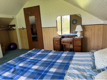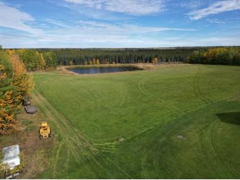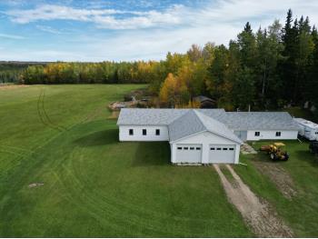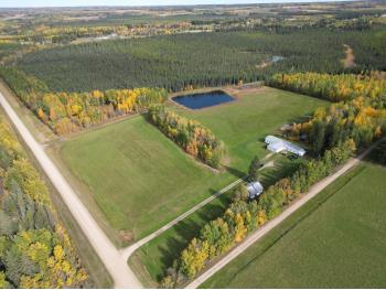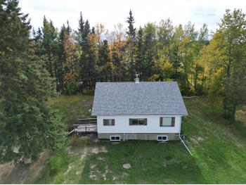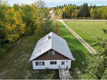 For the outdoor enthusiast… Spanning 161 acres, this property is complete with cozy home, heated workshop, heated garage, large storage space, picturesque pond, trails through the trees to explore, open spaces, massive dugout, and an abundance of trees. The quaint story-and-a-half residence boasts a galley kitchen, a dining room, a cozy living room, a bedroom, an updated four-piece bathroom, and a generous entry on the main floor. Upstairs, you'll find two spacious bedrooms along with a convenient two-piece bathroom. The asphalt shingles were newly installed in 2024. The living room is enhanced by a wood stove and patio doors that lead outside. One of the upper bedrooms also features patio doors secured with a safety bar, and there's plenty of storage available on the upper level. The workshop and storage facilities offer a 40x30 heated space perfect for your projects, a 64x30 storage area, and a 30x31 heated garage equipped with two overhead doors on the west side and a smaller overhead door on the south side. Between the garage and the storage area, the wall has been built for future garage door. This door is included but not installed.