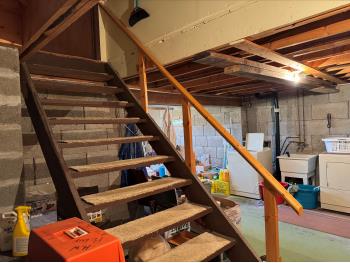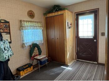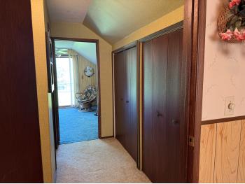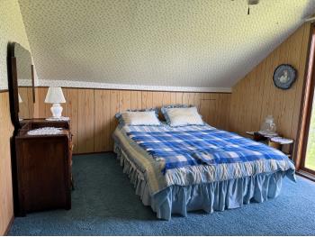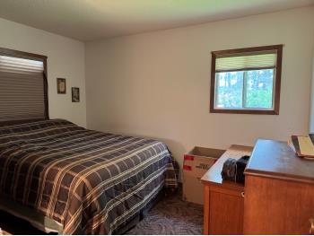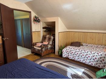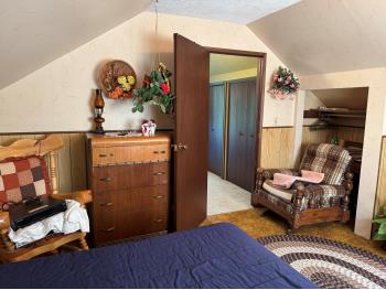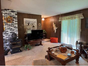 Cozy 3 bedroom home - 1 bedroom/1 four piece bath on main floor and 2 bedrooms/2 piece bath on upper level. Main floor also features country sized entry, kitchen, dining, living room. The living room has patio doors and wood stove. The galley kitchen has built in oven, counter top electric stove, Fridge & microwave. Main floor 4 piece bath has been updated. Upstairs are two spacious bedrooms with closets,. One has patio doors & safety bar. 2 main storage closets on landing and attic storage as well. The full unfinished basement is constructed of 8x24 dual blocks filled with concrete. There are vinyl windows with window wells. Exterior of basement has been finished with 2 coats of weather proofing, wrapped with matting and covered with preserved plywood. A quantity of 3x6x10 timbers, 32 sheets of 8 ft drywall &