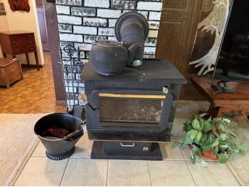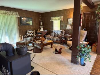 Dishwasher-Portable, Dryer, Fan-Ceiling, Furniture Included, Oven-Built-In, Refrigerator, Stove-Countertop Electric, Washer, Window Coverings, Wood Stove. Included in workshop; wood stove, hot water heater, natural gas heater, 2 new windows for home. Quantity of rough 3x6x10 timbers, 32± sheets of drywall and firewood. Included are 2 vinyl windows for replacing the 2 main level windows.