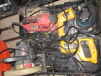 Dewalt reciprocating saw, Dewalt drywall screwdriver, Sears jigsaw, Skil Belt sander, Makita palm sander, B7D jigsaw, Skil 7" Circular saw