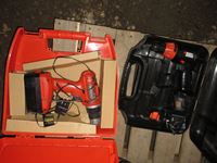 Makita 7" grinder, Makita jigsaw, Mastercraft 4" grinder, B& D drill