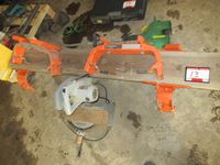 (3) Helmets, (1) welding helmet, (4) hard hats, ski boots, ski organizer, (2) boat lift arms