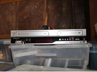 multiple video tape movies, multiple DVDs, Pioneer & Magnavox video recorders, small tote with accessories