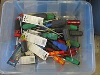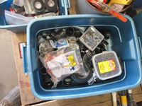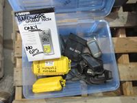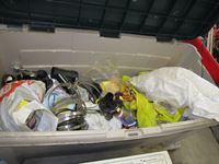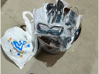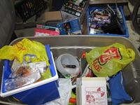 (1) bucket w/new 3D glasses, (1) box safety glasses, (1) box over prescription safety glasses, white tote multiple packages new navigator readers and soft cases