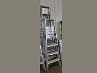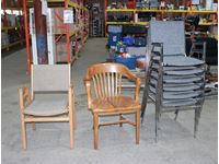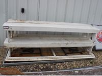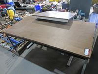 (4) wooden benches, (2) wooden tables, (1) steel table