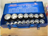 Mastercraft socket set, Samoa Dremel tool, cordless drill and flashlight 18 volt