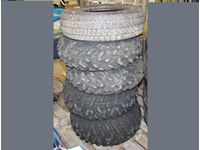 (1) misc Firestone, (2) Dunlop w/rims 25x8-12, (2) Dunlop 25x10-12