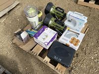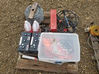 88 Fluorescent Lights(Unused), (2) Micro Wall Pak Lights, (2) Electric Bale String Cutters, Wooden Box