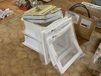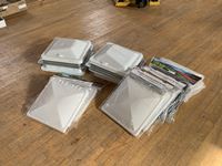 sewer vents, (6) roof vents smoked 14 in. x 14 in., (5) roof vents white 14 in. x 14 in.