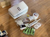 case of thermal mastic compound, Mouse Free undercarriage lubricant, fresh water tank sanitizer, rodent repellant, fresh water filters, water and stain repellant, gloss black paint, step and slide lube, fabric seam seals, flushable toiletrie products