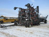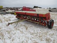 12" spacing, 4 bar mounted harrows, Morris 6180 tow behind (2) compartment air cart, hyd drive fan, 21.5-16.1 tires on cart