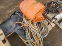 Lick tank wheels & brackets, cargo tarp 1' X 23', 6 lariats & some nylon ropes