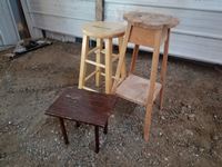 38 (2) Wooden Stools & Small Wood Table