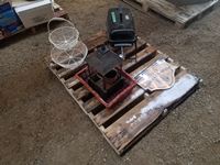 Fruit basket, large candle holder, sign, basket, portable Bar B Que