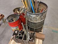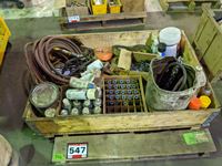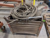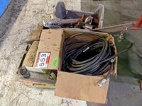 Air hose, mechanics stool, load binder, ratchet straps, hooks, pins, shackles, mig welder tips, miscellaneous parts