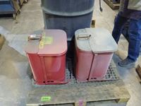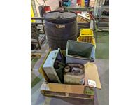 (2) waste cans, barrel of straps, fan, trouble light, rubber boots, safety vest, miscellaneous