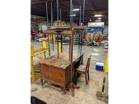 472 (3) Small Tables, Wood Desk with Wood Chair & Coat Rack